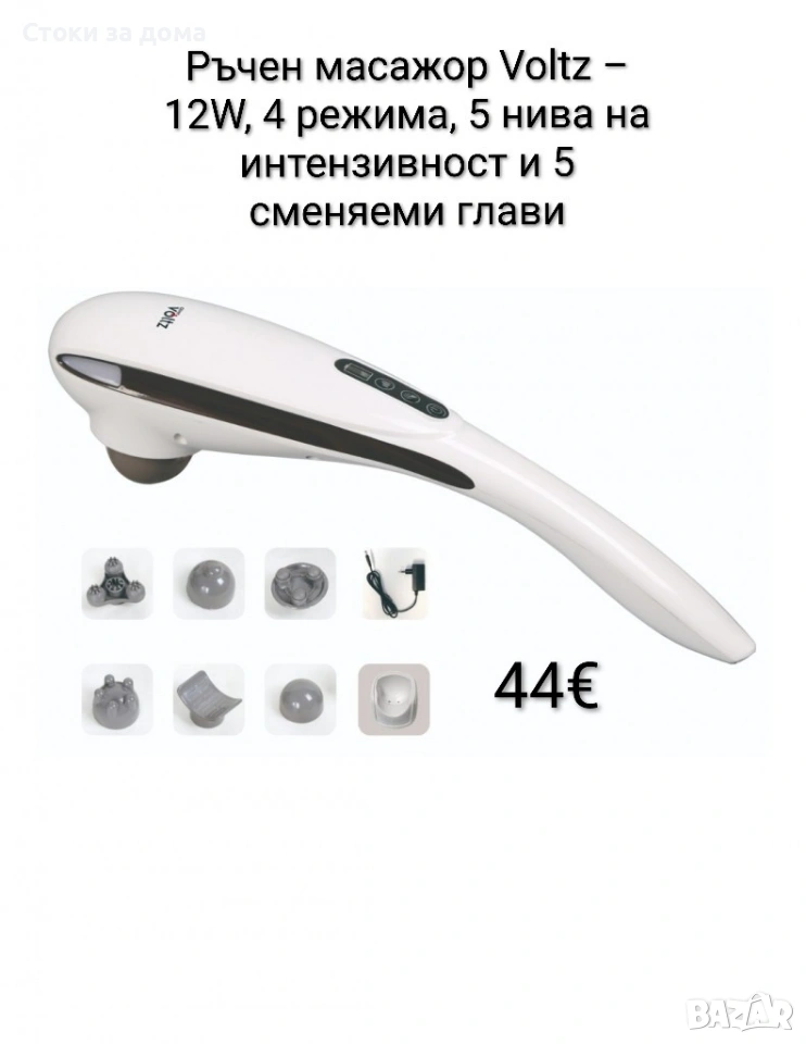 Ръчен масажор Voltz – 12W, 4 режима, 5 нива на интензивност и 5 сменяеми глави