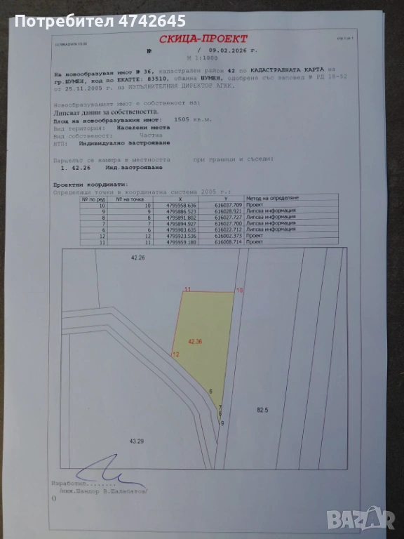 Имотът е обособена част от функциониращ градински център, с изготвена скица-проект за разделяне.