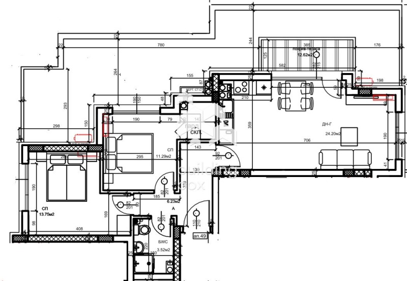 - РАЗПРЕДЕЛЕНИЕ: Светла дневна с кухненски бокс, спалня 1, спалня 2, баня с тоалетна и просторно входно антре. Разпределението е функционално, предоставящо възможност за оптимално оползотворяване на площите. Големите прозорци осигуряват много естествена светлина, която създава усещане за комфорт.