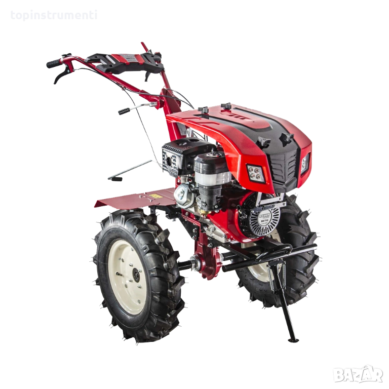Резервоарът с вместимост 6.5 литра осигурява продължителна работа без нужда от чести зареждания, а гуми 6x12 цола осигуряват отлично сцепление и маневреност дори при наклонен терен. Машината тежи около 120 кг, което я прави стабилна и подходяща както за професионални, така и за домашни нужди.