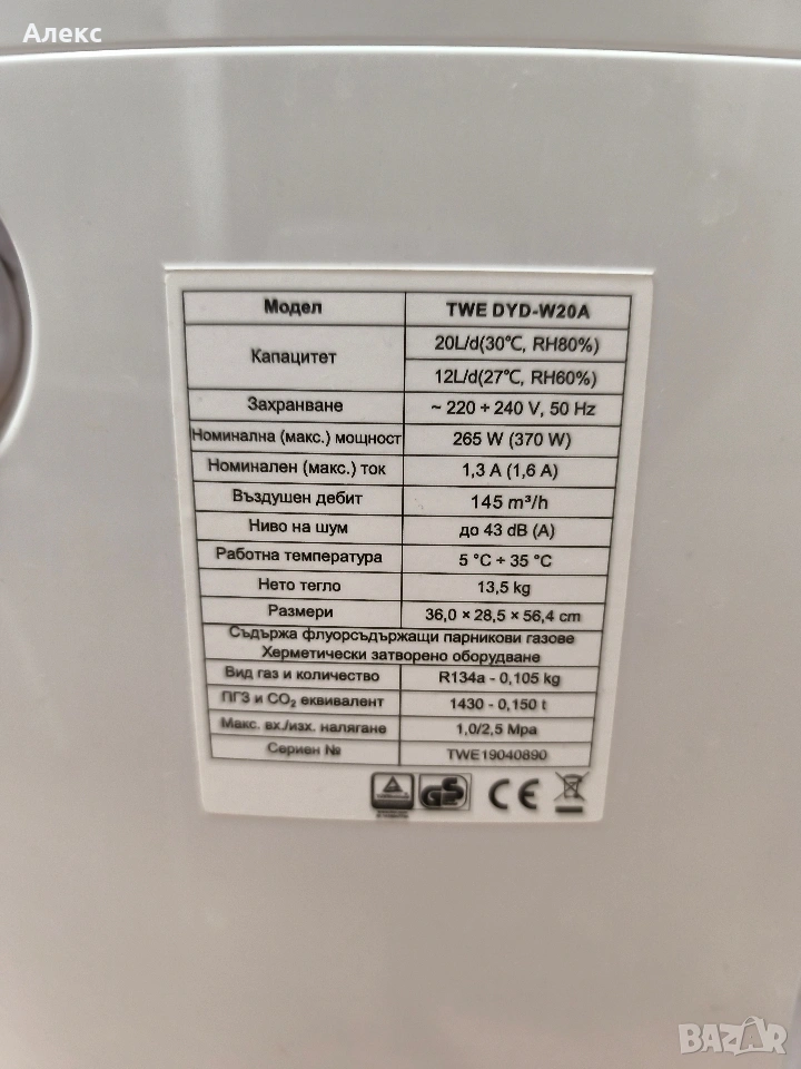 TWE обезвлажнител/ влагоабсорбатор , снимка 1 - Влагоабсорбатори и влагоуловители - 53537311 TWE обезвлажнител/ влагоабсорбатор , снимка 2 - Влагоабсорбатори и влагоуловители - 53537311 TWE обезвлажнител/ влагоабсорбатор , снимка 3 - Влагоабсорбатори и влагоуловители - 53537311 TWE обезвлажнител/ влагоабсорбатор , снимка 4 - Влагоабсорбатори и влагоуловители - 53537311 1/4