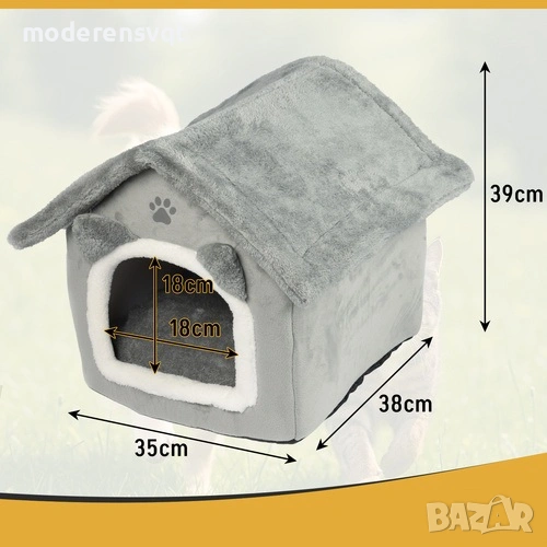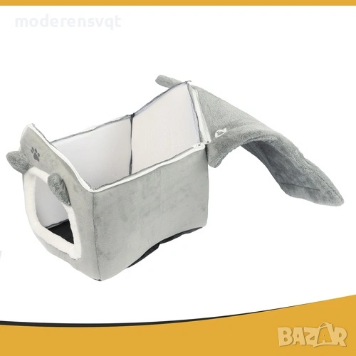 2 в 1 кучешка къщичка и легло в един комплект - Комплектът включва къщичка с мека възглавница - котката може да се скрие в нея или да се разпростре отгоре, избирайки перфектната позиция за дрямка.