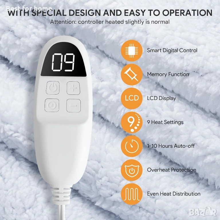 Електрическо отопляемо одеяло Olycism 200x180 см. с 9 нива на нагряване