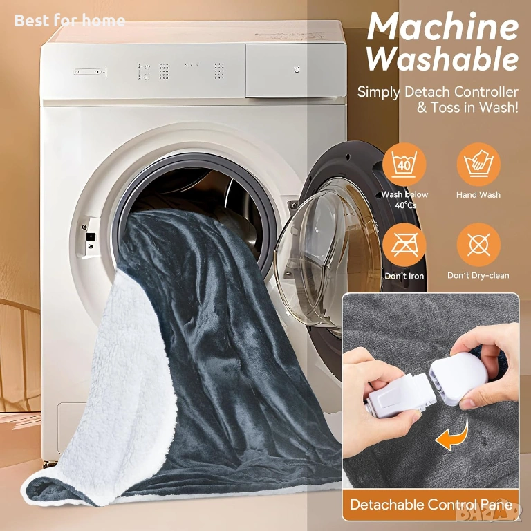 【Пере се в пералня и е лесна за поддръжка】Електрическият нагревател може да се пере за лесна поддръжка. Можете да перете на ръка или в пералня с вода ≤40℃. (Забележка: Моля, отстранете контролера преди почистване). Сушете на канапе и в сушилня при ниска температура.