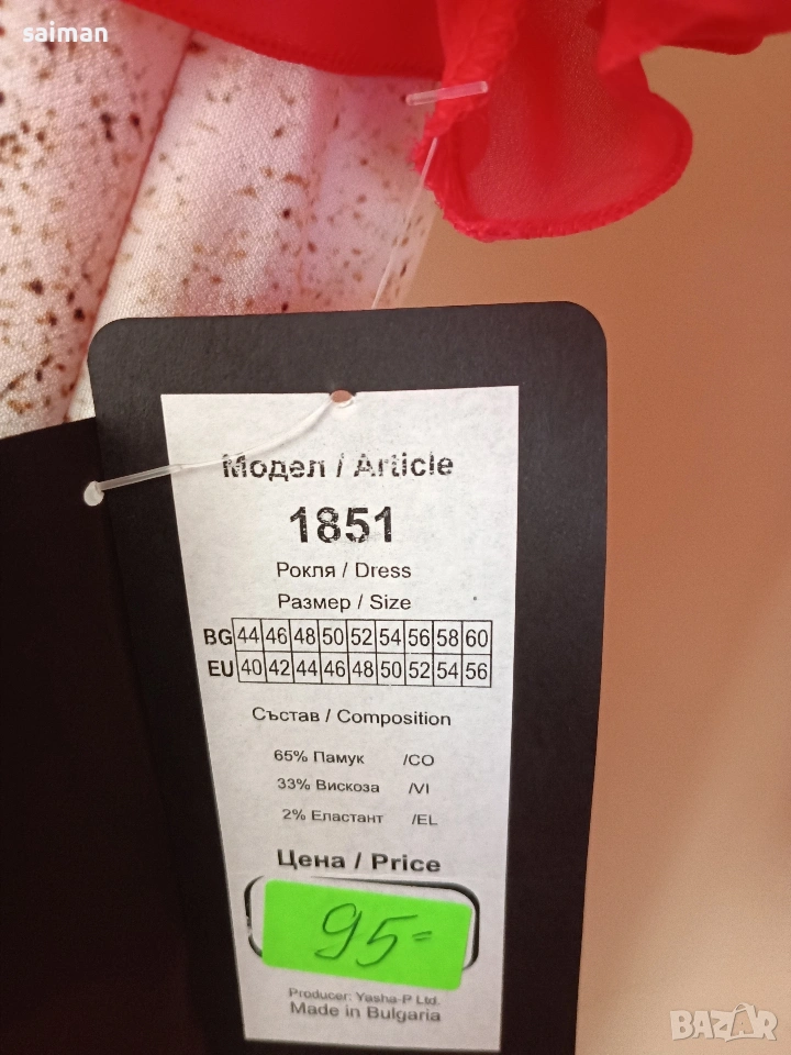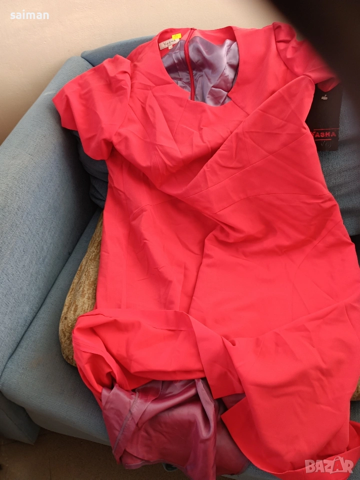 снимки 1-5 нова рокля червена YASHA н-54 дължина -110 см рамене-40 см ръкави-26 см цена 30 евро и нова рокля YASHA н -52 дължина -115 см рамене-40 см ръкави -26 см цена 30 евро снимки 6-9 рокля Laudhause нова без етикет дължина -95 см рамене-35 см цена 20 евро и пола нова без етикет ehelya xxl дължина -83 см колан-30 см цена 10евро снимки 10-15 нова рокля люсил н-54 дължина -106 см рамене-40 см ръкав-33 см цена 30 евро и шлифер като нов Милан колектион дължина -125 см рамене-42 см ръкав -75 см цена 16 евро