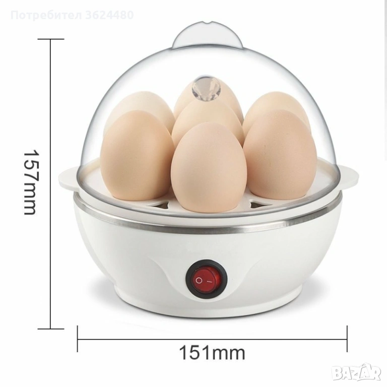 Вариант 1: Размери на яйцеварката на едно ниво до 7 яйца: 15,7 см * 15,1 см;