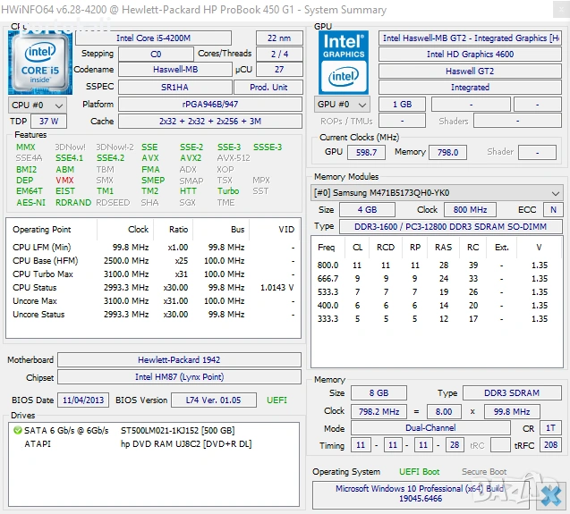 Лаптоп hp ProBook 450 G1 Intel Core i5-4200M / 8GB RAM / 500GB HDD
