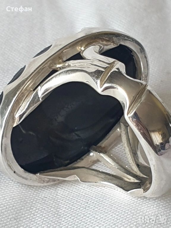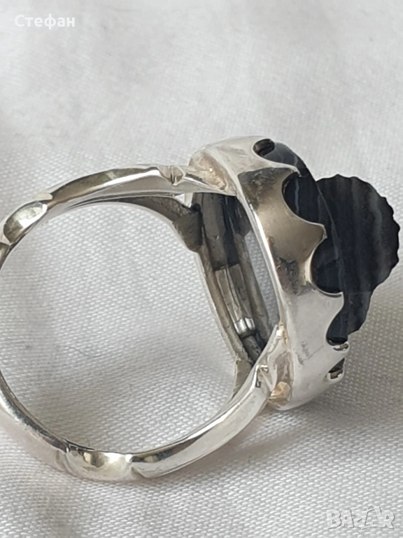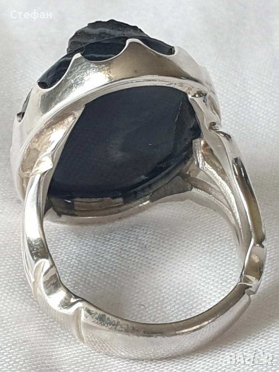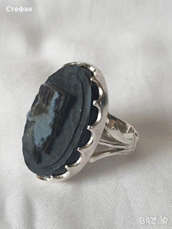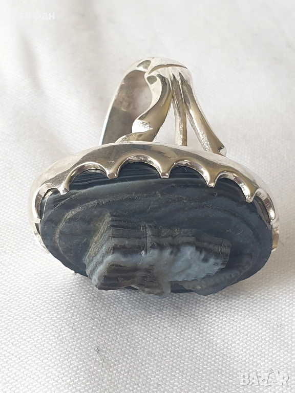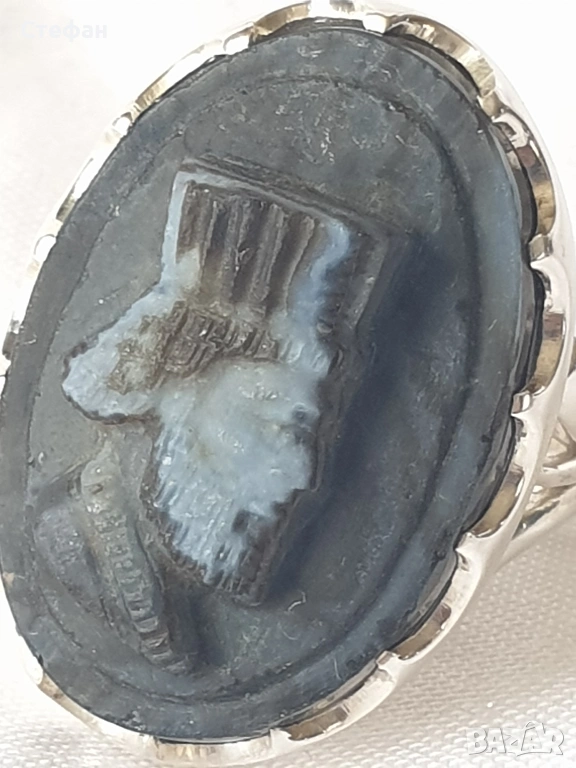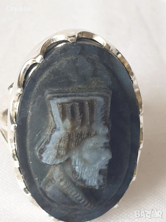 Масивен сребърен пръстен със стара гема ( персийски цар ), тегло