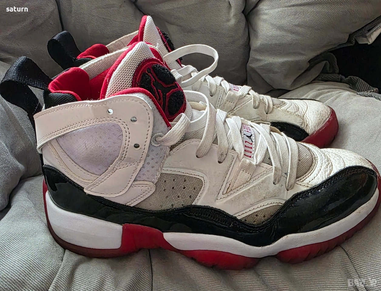 Оригинален Jordan за волейбол от USA Номер 40.5 Забележка :отпред при пръстите са разлепени червената част трябва презалепване при обущар. Чиста кожа много здрави и в отлично състояние, като изключим разлепването Цена 20 евро За гр София център с лично предаване