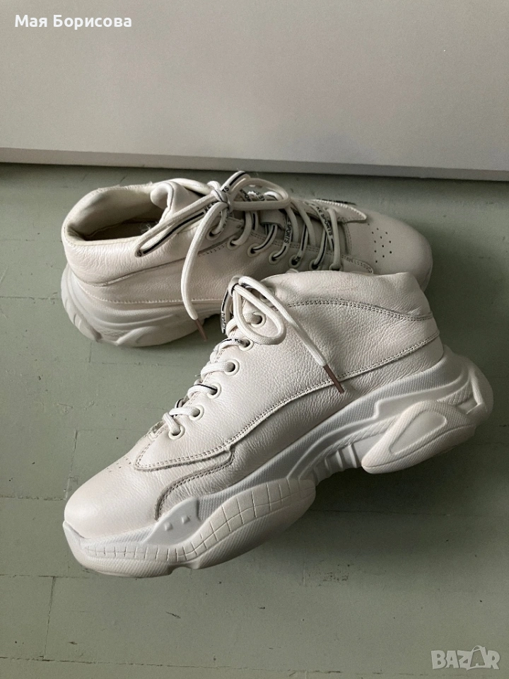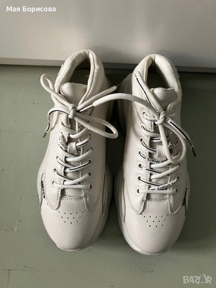 Дамски маратонки от естествена кожа, светло бежови, стелка 24 см., платформа 4 см., перфектно състояние.