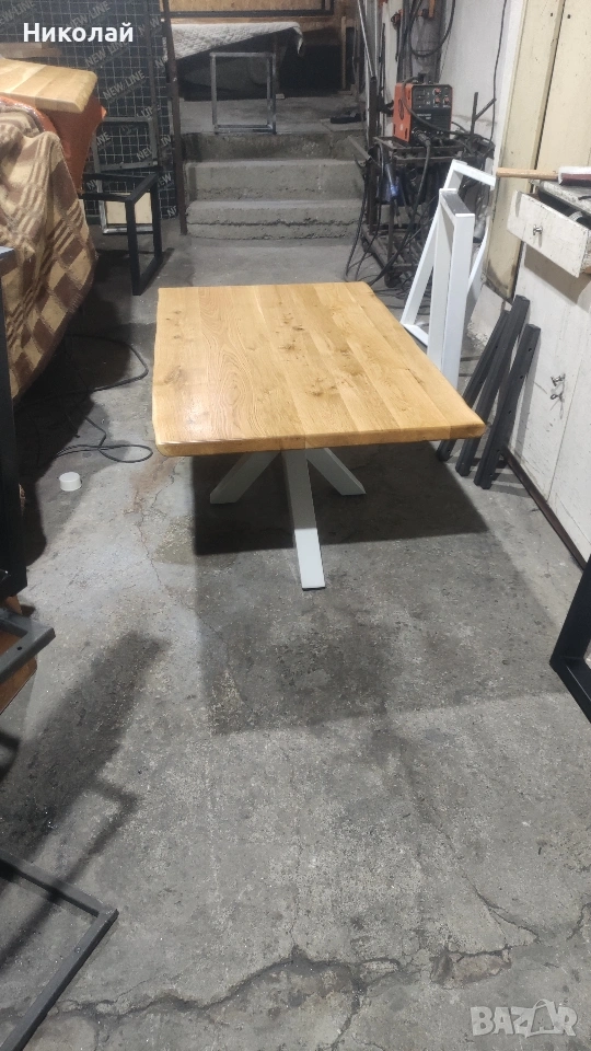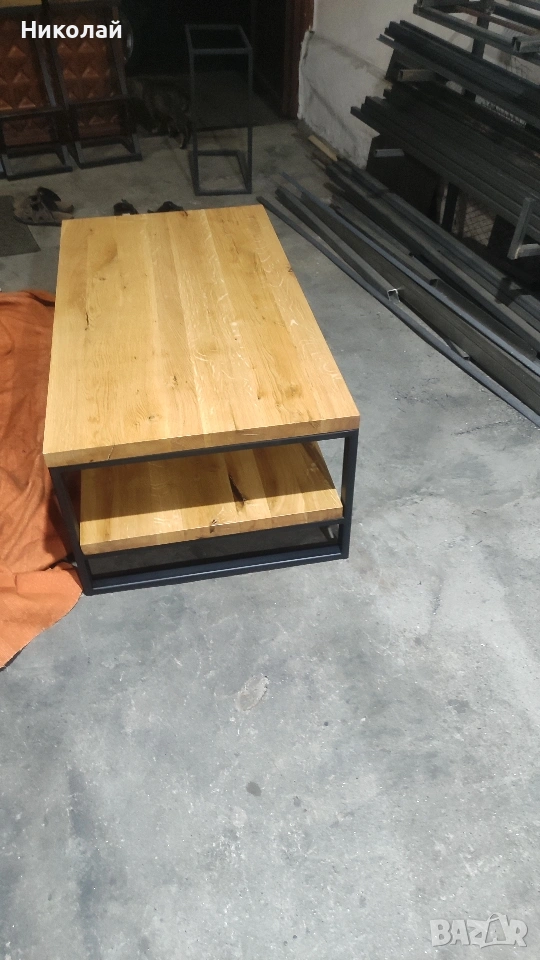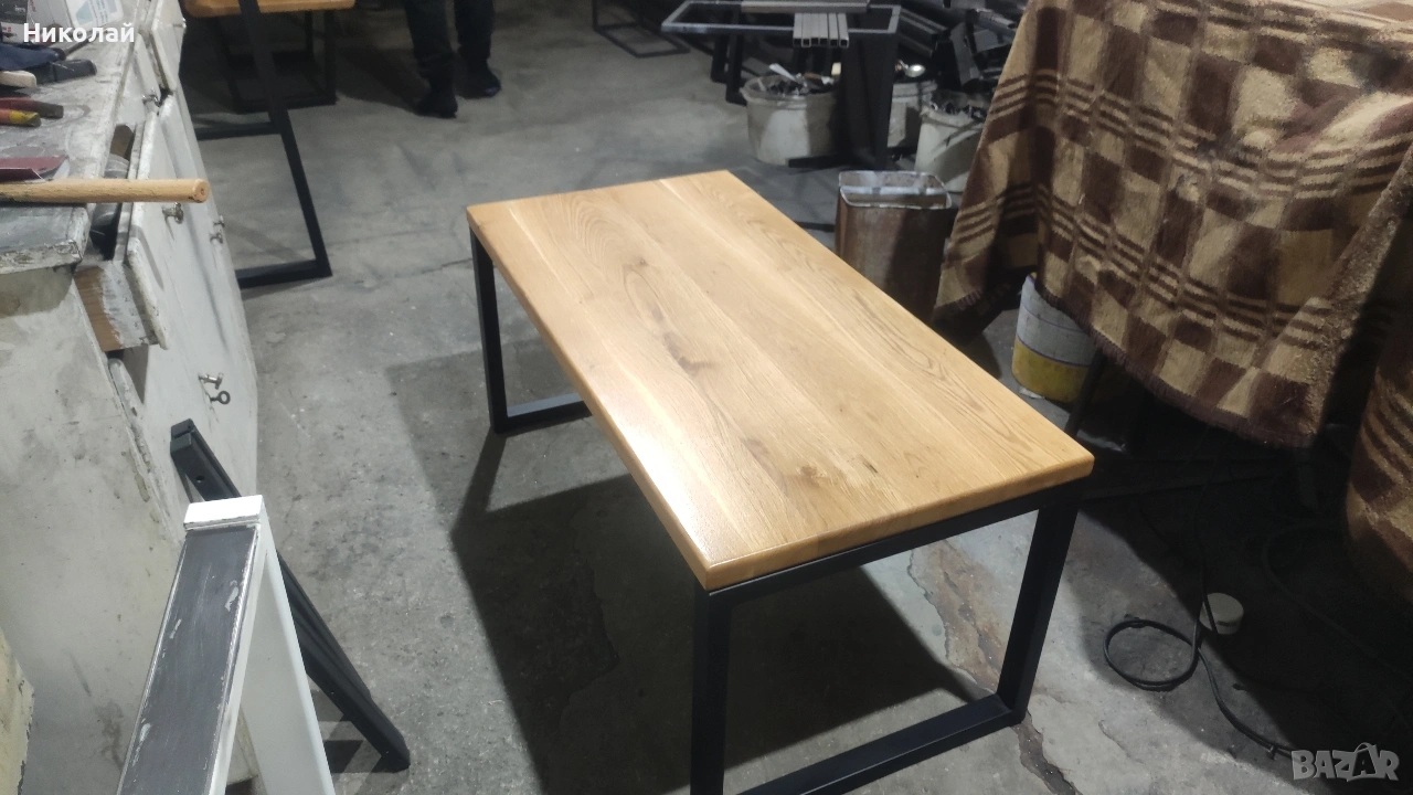 Холна маса от масивен дъб с метални крака – ръчна изработка по поръчка