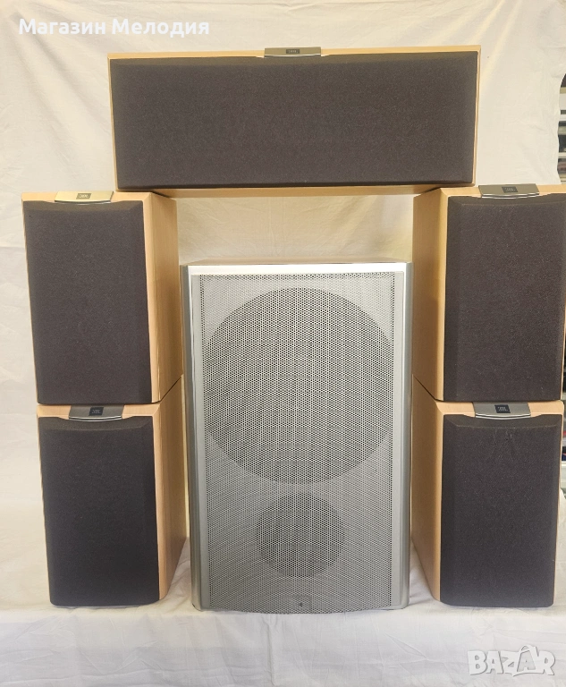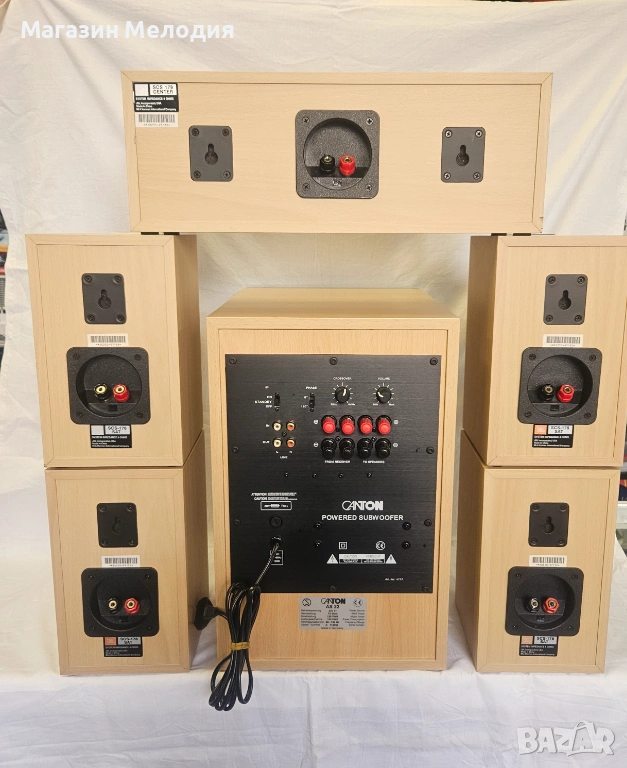 Качествен комплект тонколони за домашно кино. Активна бас каса CANTON AS 22, център JBL и 4 колони J