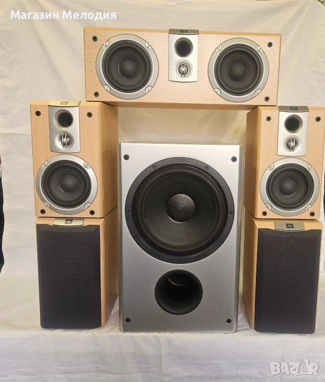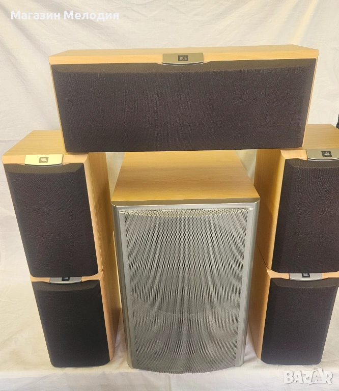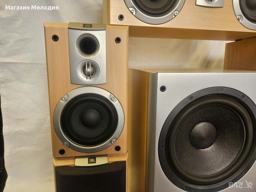 Качествен комплект тонколони за домашно кино. Активна бас каса CANTON AS 22, център JBL и 4 колони JBL.
