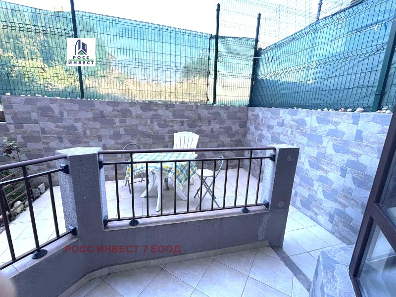 Ексклузивно! 1-стаен апартамент, 42 кв.м. застр.площ, на партерен етаж, със собствен двор, на първа линия, до заведение 'Окото', състоящ се от предверие, баня с тоалетна, кухня-всекидневна и веранда.