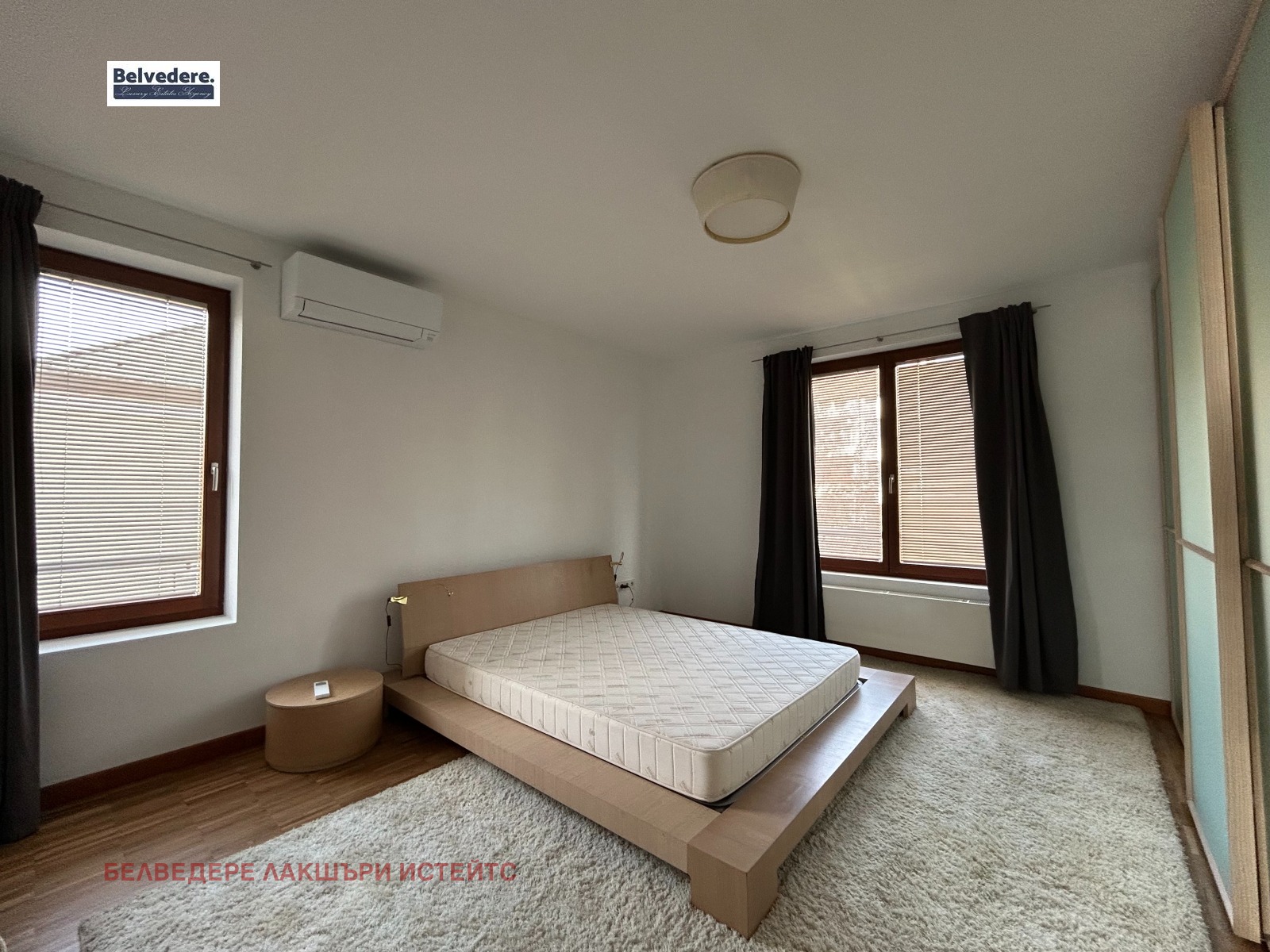 Разпределение: антре, дневна, самостоятелна кухня, родителска стая, втора стая, баня с тоалетна, мокро помещение.Наземно паркомясто - 200 евро/месец.Такса поддръжка на общи части - 200 евро/ месец.