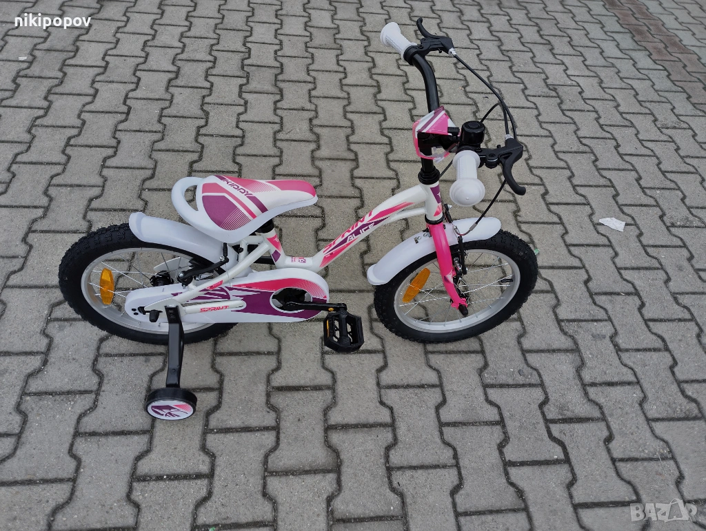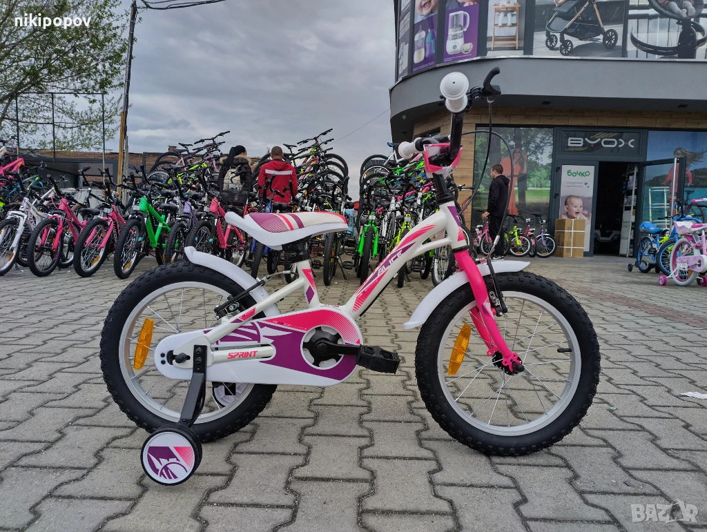 *Детският велосипед на Sprint Bikes е един прекрасен избор за децата между 4 и 6-годишна възраст и височина от 100 до 120см. Возилото е снабдено с помощни колела, посредством които детето ще усъвършенства умението си да балансира на две гуми неусетно, докато се забавлява.
