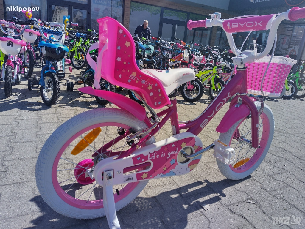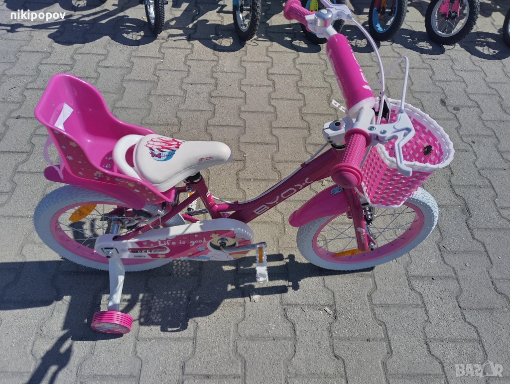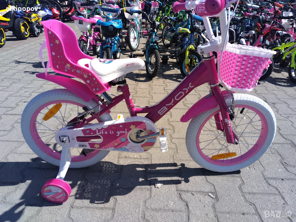 *Детският велосипед на Byox е един прекрасен избор за децата между 4 и 6-годишна възраст и височина от 100 до 120см. Возилото е снабдено с помощни колелета, посредством които детето ще усъвършенства умението си да балансира на две гуми неусетно, докато се забавлява.