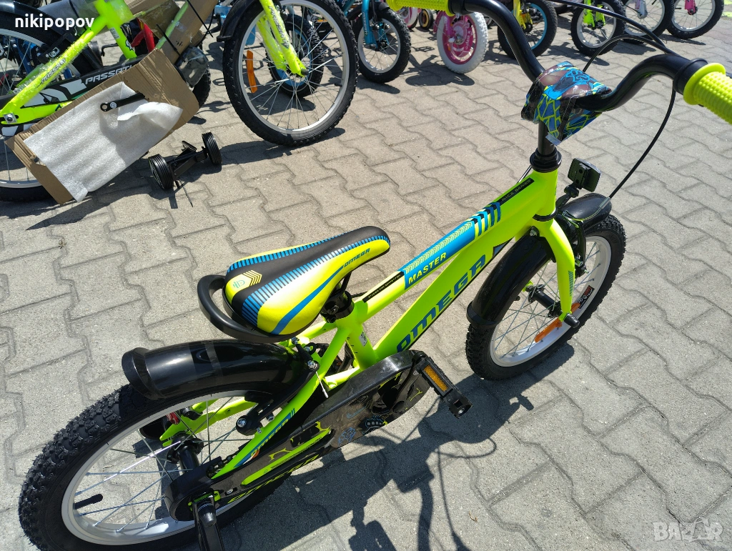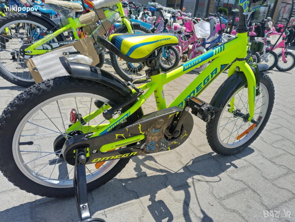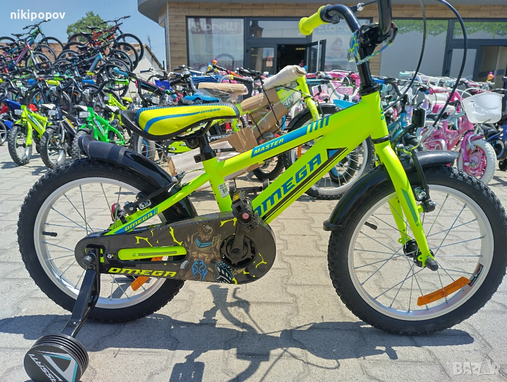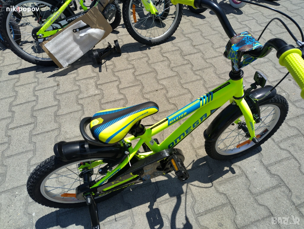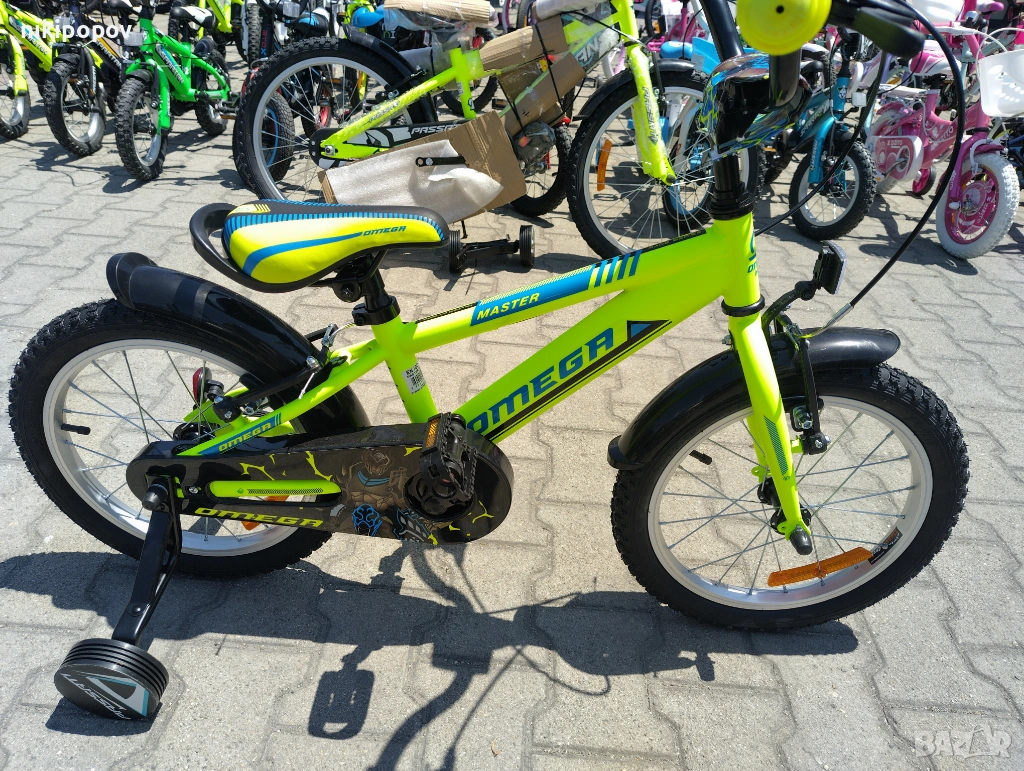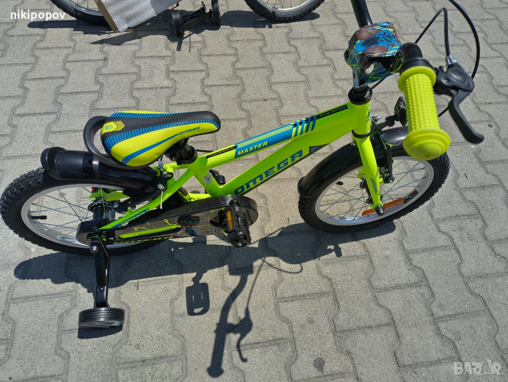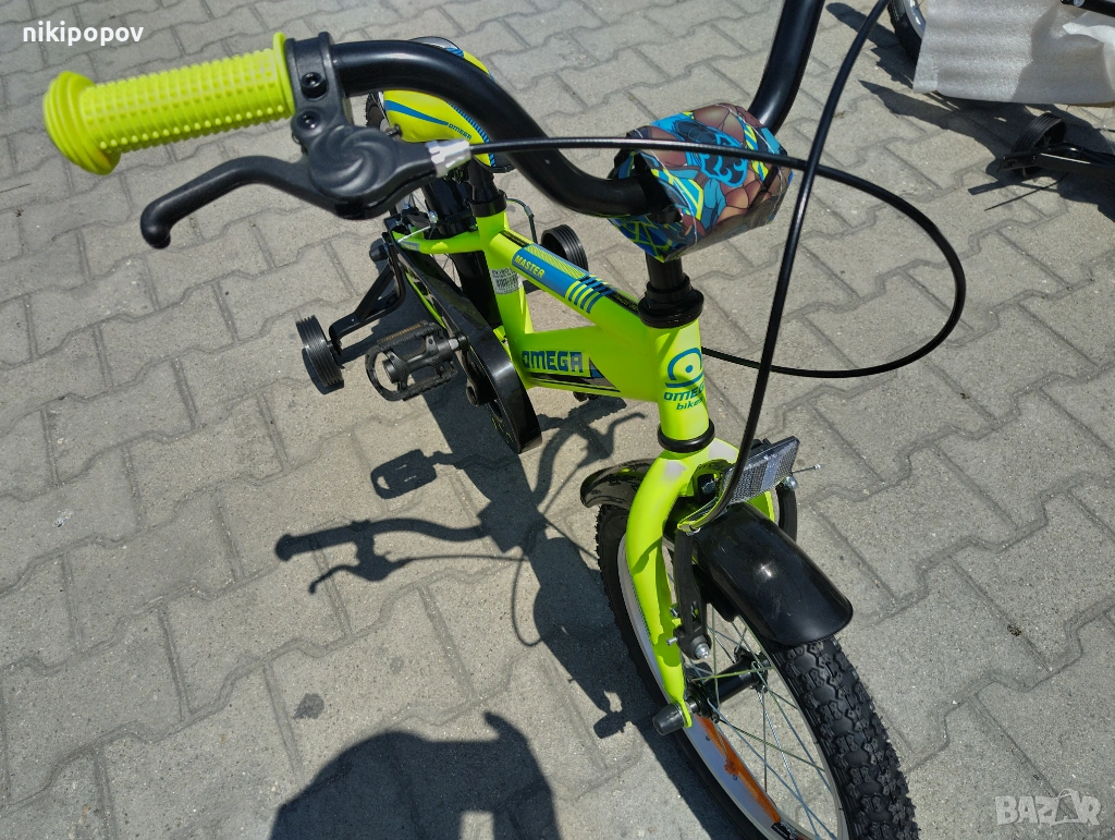 *Детският велосипед на Omega Bikes е един прекрасен избор за децата между 4 и 6-годишна възраст и височина от 100 до 120см. Возилото е снабдено с помощни колела, посредством които детето ще усъвършенства умението си да балансира на две гуми неусетно. Рамката е метална. Велосипедът е с алуминиеви капли. Разполага с предна и задна V-brake спирачка, пластмасови калници и предпазител на веригата.