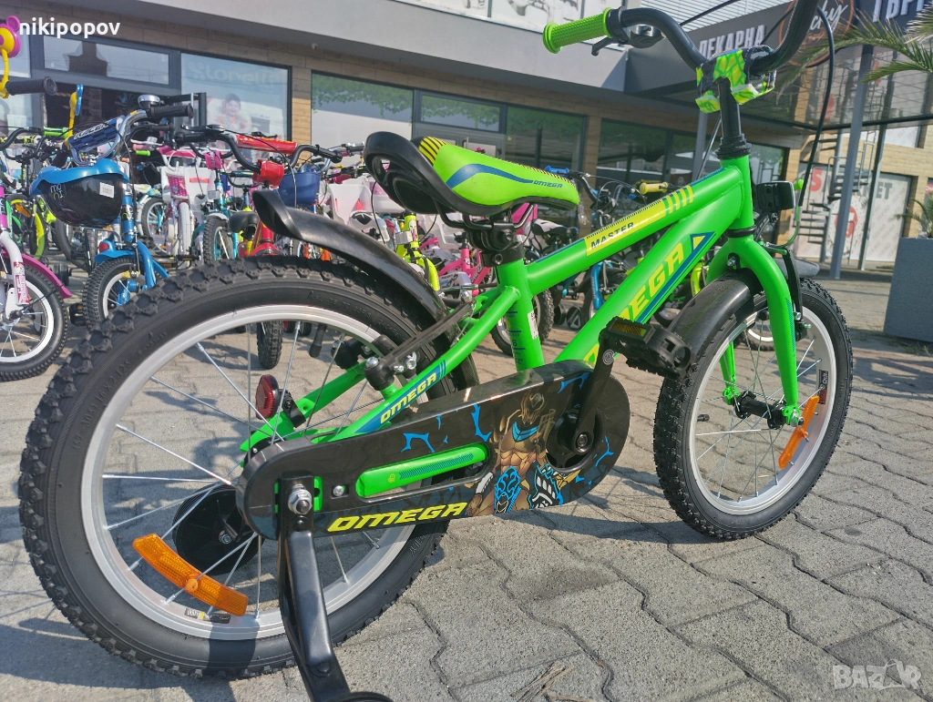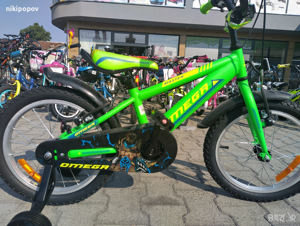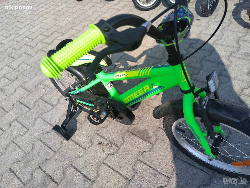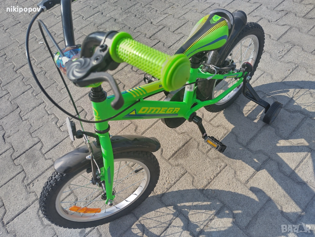 *Детският велосипед на Omega Bikes е един прекрасен избор за децата между 4 и 6-годишна възраст и височина от 100 до 120см. Возилото е снабдено с помощни колела, посредством които детето ще усъвършенства умението си да балансира на две гуми неусетно. Рамката е метална. Велосипедът е с алуминиеви капли. Разполага с предна и задна V-brake спирачка, пластмасови калници и предпазител на веригата.