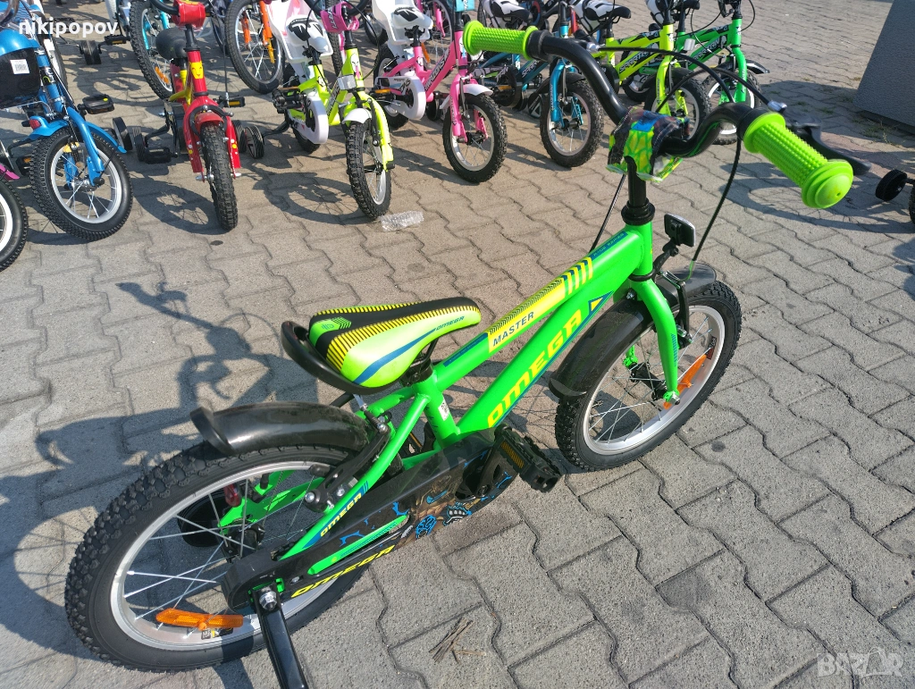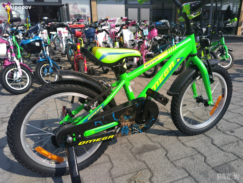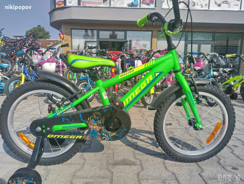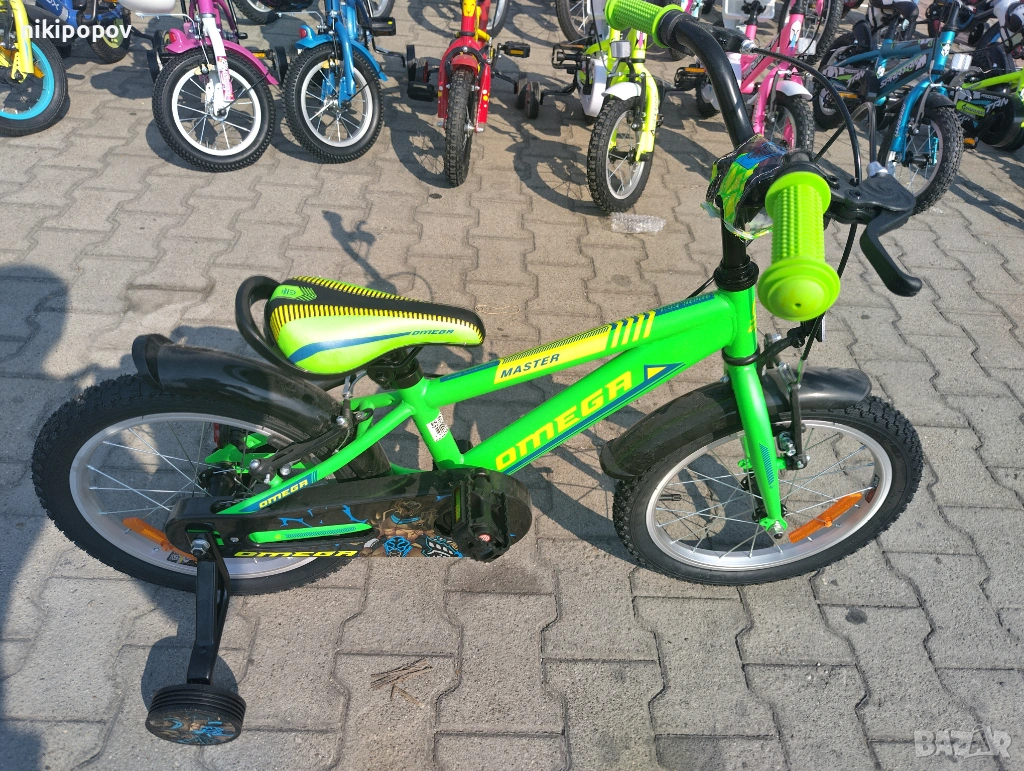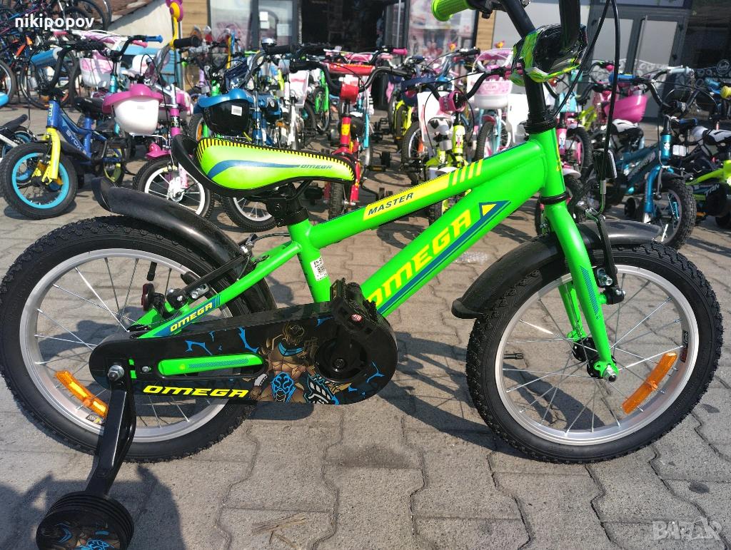 *Детският велосипед на Omega Bikes е един прекрасен избор за децата между 4 и 6-годишна възраст и височина от 100 до 120см. Возилото е снабдено с помощни колела, посредством които детето ще усъвършенства умението си да балансира на две гуми неусетно. Рамката е метална. Велосипедът е с алуминиеви капли. Разполага с предна и задна V-brake спирачка, пластмасови калници и предпазител на веригата.
