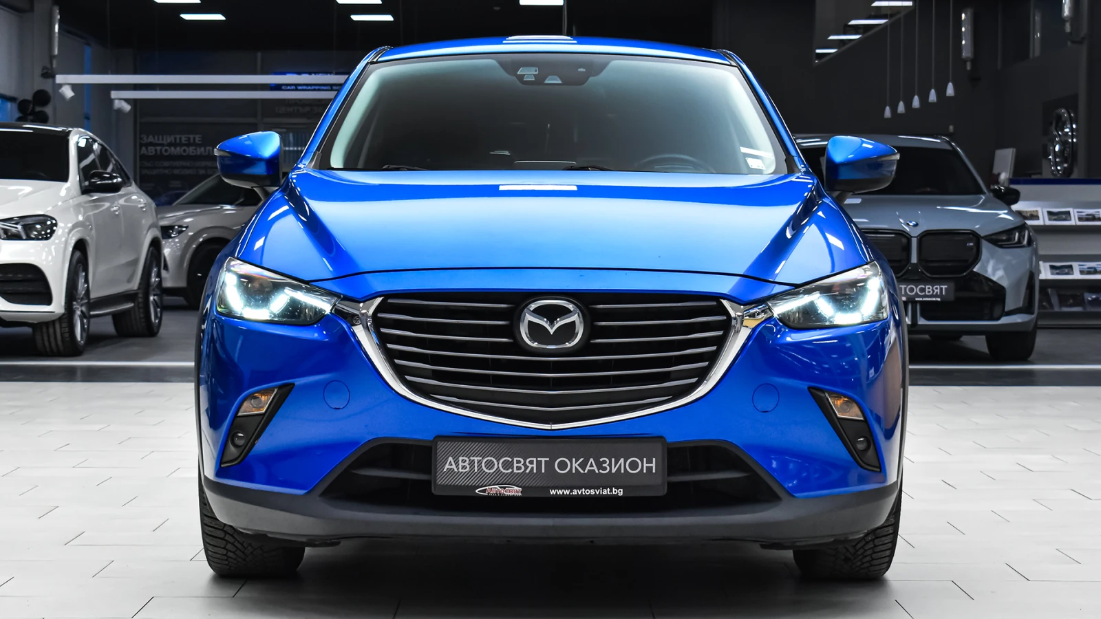 Автосвят ООД - официален представител на Opel и Mazda, предлага на Вашето внимание проверен автомобил Mazda CX-3 2. 0 SKYACTIV-G EVOLUTION 4x4 Automatic Допълнителни услуги: - лизинг; - сътрудничество при регистрация; - възможност за обратно изкупуване; - посредничество при застраховане; - посредничество при завеждане на щети при застрахователя. Цвят - Dynamic Blue Metallic Apple CarPlay Android Auto SKYACTIV BODY ABC/EBD/EBA антиблокираща спирачна система с разпределение на спирачното усилие и спирачен асистент за екстремно спиране DSC/TCS система за динамичен контрол на траекторията и срещу прибуксуване и поднасяне 8 въздушни възглавници предни, странични и завеси за всички места 3PSB автоматични 3-точкови предпазни колани с дообтегачи и ограничители на силата на притягане ISOFIX Active headrest активни предни подглавници предпазващи от травми при камшичен удар ESS (Emergency Stop Signal) автоматично включване на аварийните мигачи при рязко спиране HHA Hill Hold Assist система за подпомагане при потегляне под наклон TPMS система следяща налягането на гумите чрез директно измерване SCRS (Secondary Collision Reduction System) реактивна система, предотвратяваща сблъсък след камшичен удар STI (Smart Turn Indicator) активиране на мигачите с леко докосване на превключвателя и автоматично изключване след 3 такта Подгряване на страничните огледала Cruise control система за поддържане на постоянна зададена скорост с управление от волана Регулиране на пасажерската седалка по височина i-Stop система за изключване и рестартиране на двигателя при спиране или престой в трафик Coming / Leaving Home изпрати ме до вкъщи функция за забавено изгасване на светлините Mazda Info Display SCBS (Smart city brake support) система предотвратяваща сблъсък при скорост от 4 до 80 км/ч Електрохроматично огледало за обратно виждане 7 touch screen мултимедиен дисплей с висока резолюция HMI интерактивен командер за управление на системите Климатроник двузонален автоматичен климатик Автоматично включване на фаровете сензор за светлина Автоматично включване на чистачките сензор за интензивност на дъжда Допълнителен USB за предните места и 2 USB входа за задните места 12V изход Bluetooth система за безжично управление функциите на телефон DEVIL S LOOK мултисегментни LED основни фарове LED дневни светлини (според ЕС стандарт) LED фарове за мъгла LED задни светлини включително и за задна скорост Заден парктоник 4 сензорен Тонирани задни стъкла 70%, с UV и топлинна защита Подгряване на предните седалки 3 степенно с електронно управление Автоматично сгъваеми странични огледала при заключване на автомобила и бутон за деактивиране при необходимост LDWS (Lane Departure Warningt System) система следяща за отклонение от лентата на движение HEAD UP display цветен проекционен дисплей над таблото визуализиращ информация от навигационната система, круиз контрол, системите за сигурност, и пътни знаци Smart key безконтактно отключване на вратите, и автоматично заключване при отдалечаване Цветна камера за обратно виждане с проектиране на траекторията на маневра и дистанция върху централния дисплей Кожен салон с Leatherino с 3D дишащ тексит в средата на седалките Алуминиеви джанти Mazda SCBS (Smart Brake Support) система предотвартяваща сблъсък в градска среда при скорост от 4 до 30 км/ч посредством инфрачервена камера за наблюдение и упражнява натиск върху спирачките на автомобила Автомобилът се намира в Автосвят гр. Русе За контакти: 0882 902 081 Нина Мучинова - шоурум Русе 0888 414 107 Борислав Русев - шоурум Р