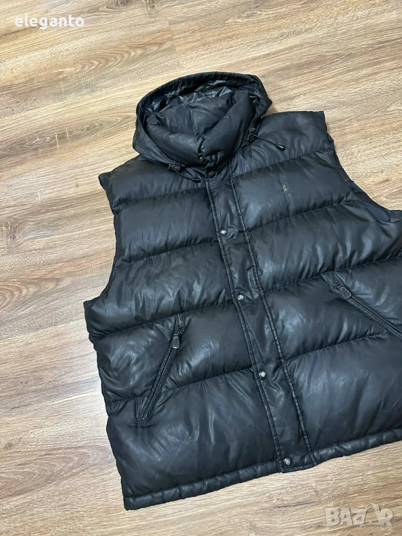 Пухените жилетки Polo Ralph Lauren са известни със своите издръжливи найлонови обвивки и топла пухена изолация, бродирано лого на гърдите , предлагайки едновременно стил и функционалност. Предлагат се в класически цветове като синьо и черно, тези жилетки се отличават с дизайн с цип по цялата дължина и непреходна естетика. Съчетанието от традиционен брандинг и практично зимно облекло ги прави търсени колекционерски предмети. Универсалността на жилетката - идеална за наслояване или самостоятелна употреба - допринася за трайната ѝ привлекателност сред модните ентусиасти и колекционерите на винтидж дрехи.
