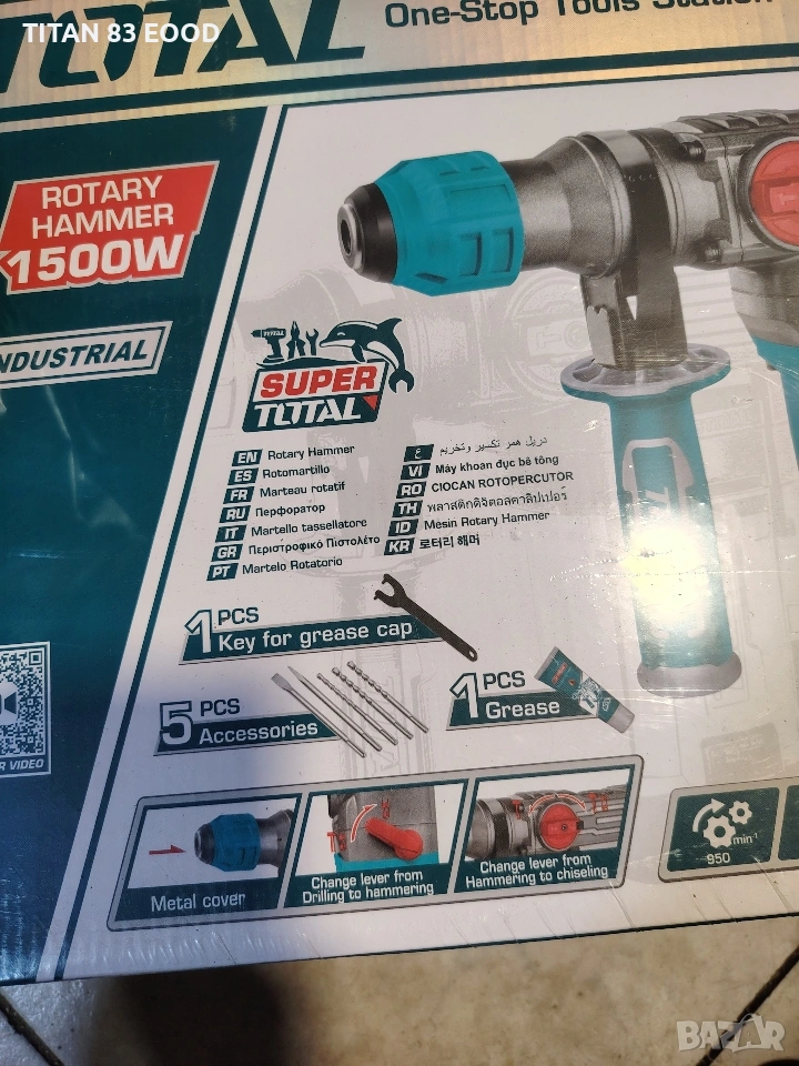 Електрически перфоратор TOTAL INDUSTRIAL, 1500 W, SDS+, куфар