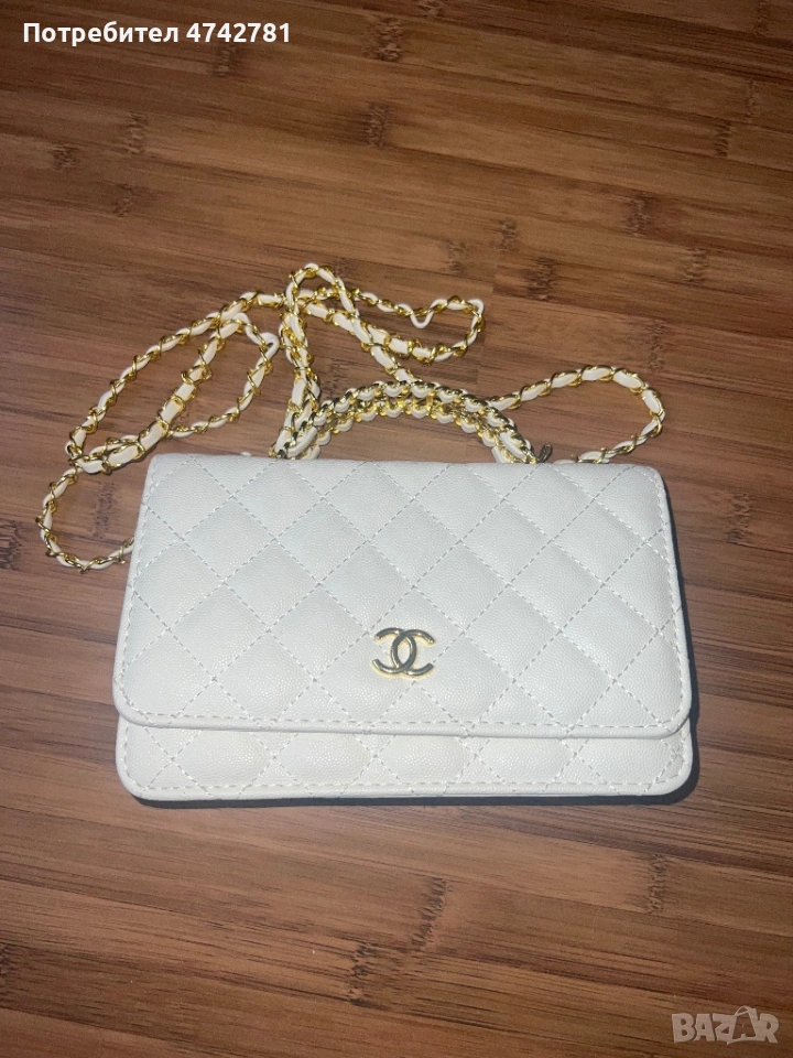 Chanel бяла чанта със златни детайли → Обява 53539177
