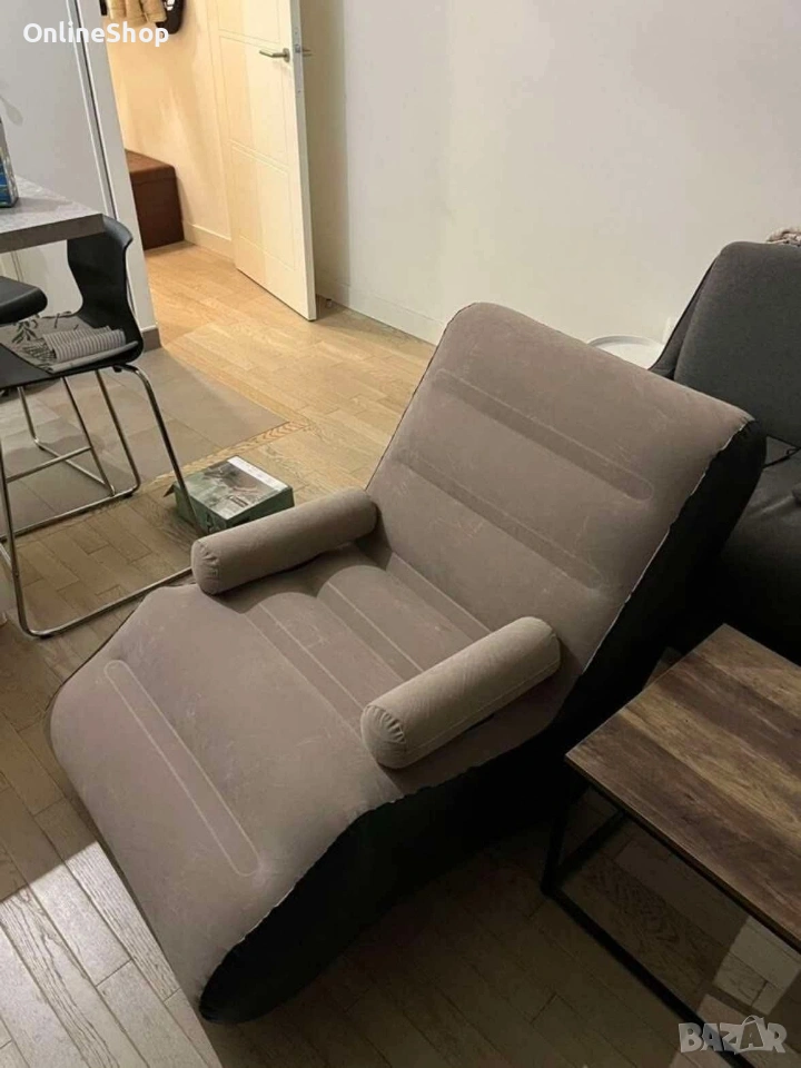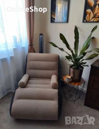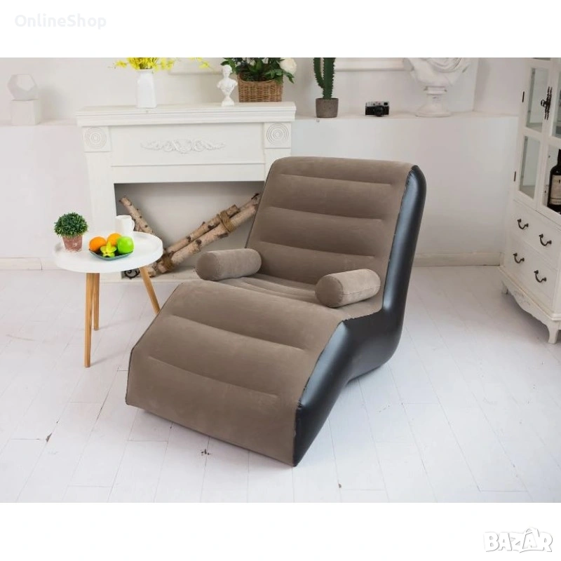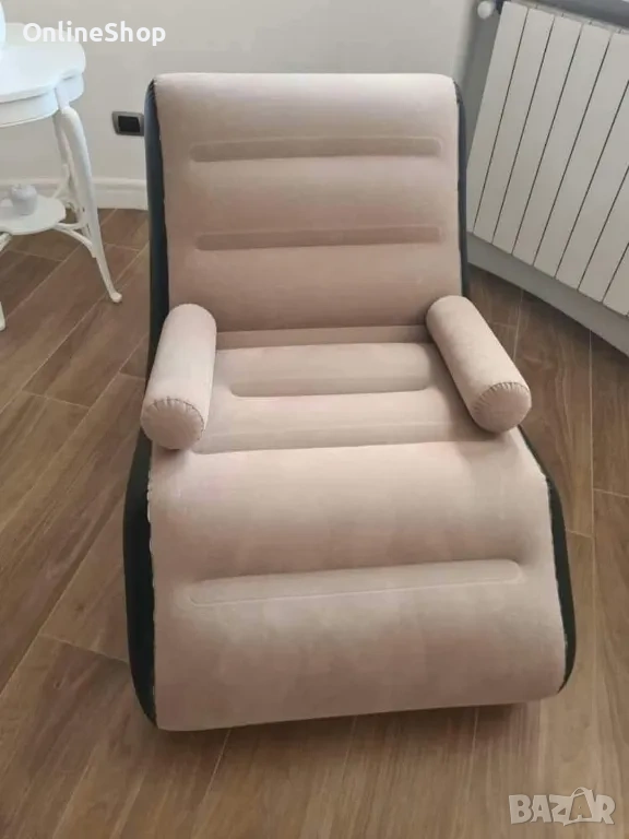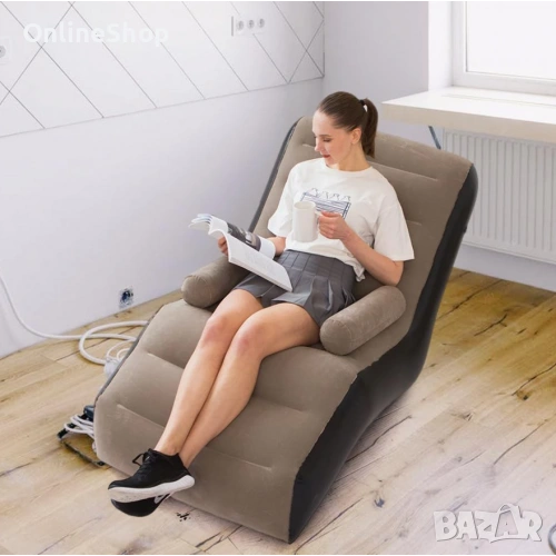 Надуваемият фотьойл предлага комфорт и удобство. Изработен е от специална здрава материя, която на повърхността е велурена и мека. Лесен за употреба, почистване и съхранение. Може да го използвате постоянно в жилището си, но предимството му е, че може да го изпуснете и пренесете където Ви е необходим, у дома, на вилата или на къмпинг.