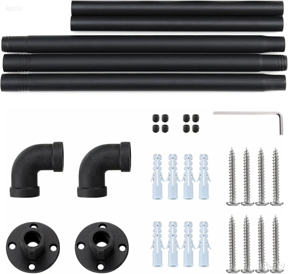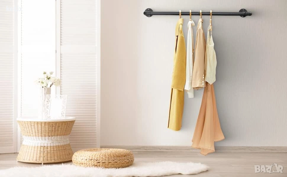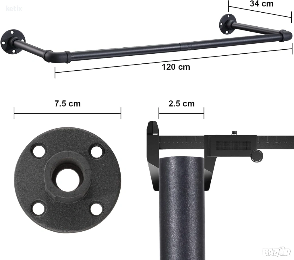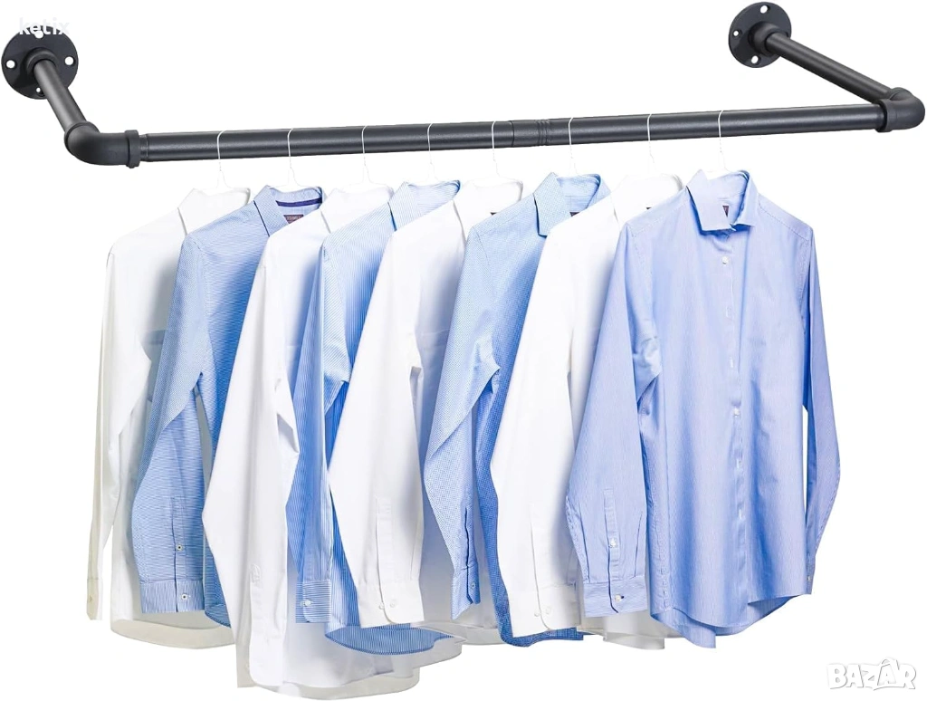 Индустриална закачалка за дрехи, 120 см рустикална подвижна стенна закачалка за дрехи и палта от неръждаема стомана, ретро лофт стил, стенна закачалка за дрехи за магазин, хол, гардероб/матово черно