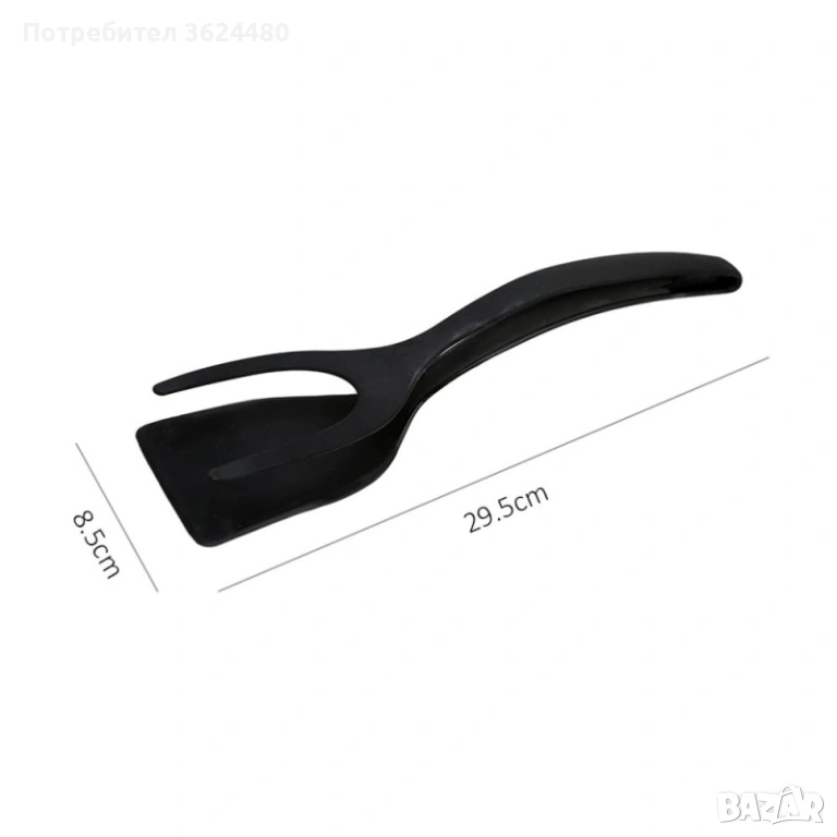 Щипката осигурява стабилност и контрол, докато шпатулата позволява лесно придвижване и обръщане на храната. Този кулинарен аксесоар е необходим за всеки шеф-готвач и обичащ кулинарията.