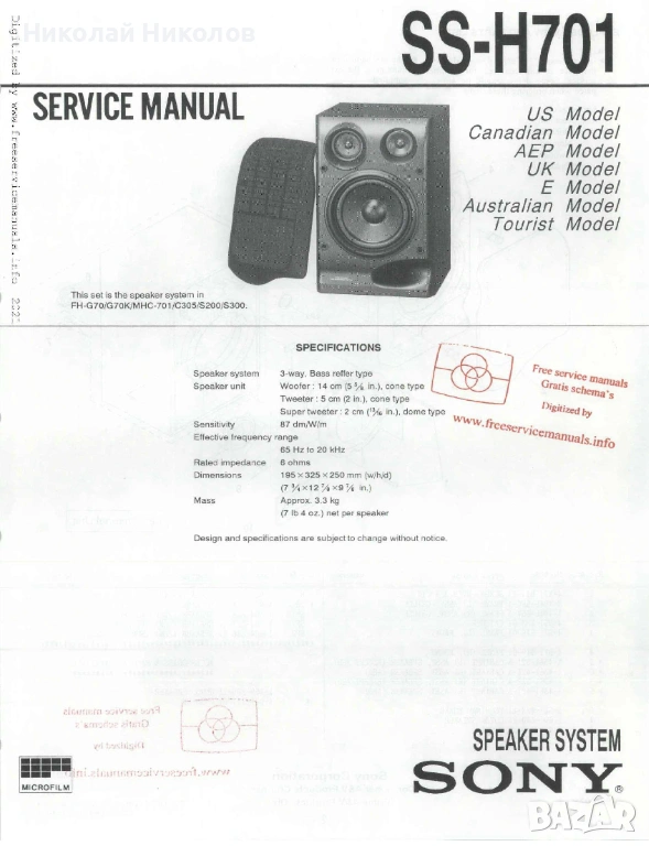 Тонколони SONY SS-H701 → Обява 53540143