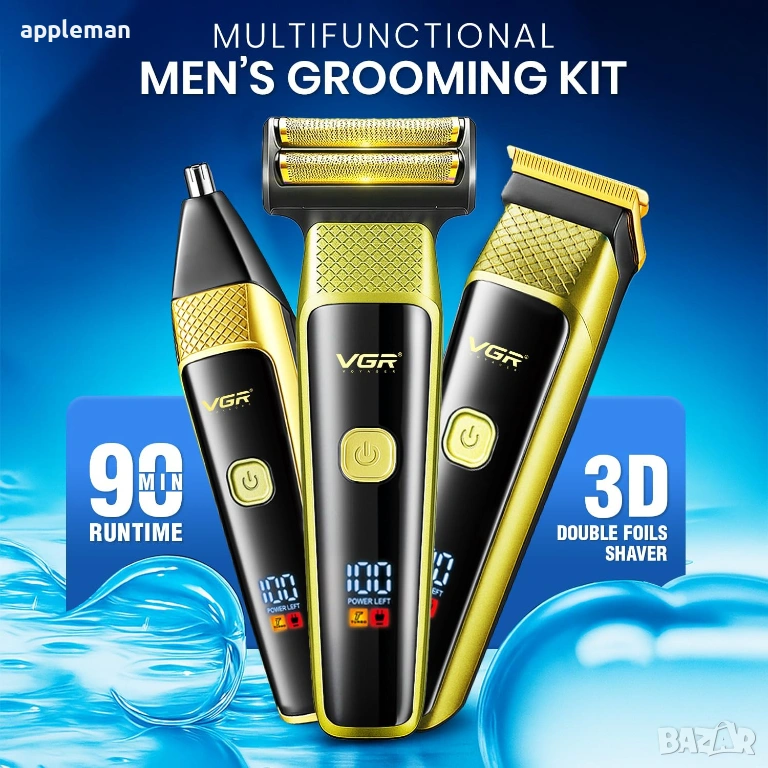 VGR VL-366 Limited Edition е универсален комплект за мъжка грижа, създаден като цялостно решение за лице, глава и тяло. С елегантен златен дизайн и сменяеми приставки, този модел съчетава стил, функционалност и удобство в едно компактно устройство.