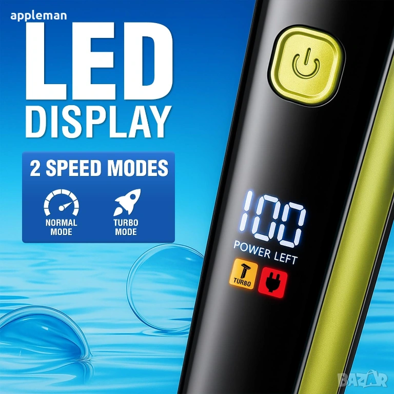 Бутон ON/OFF с Turbo функция за по-висока мощност при нужда. LED дисплеят показва нивото на батерията.