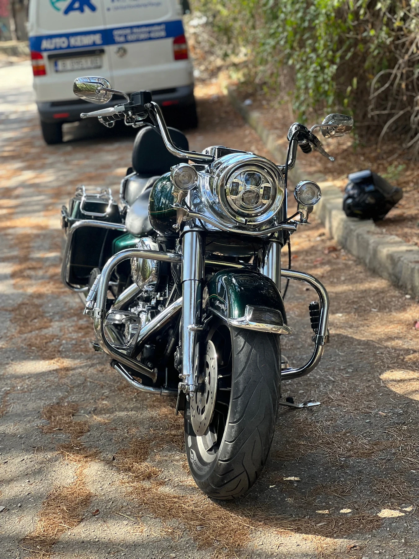 Harley Davidson FLHR Road King 1999г. Двигател: Карбуратор ( разход 4. 7 до 5. 5 литра на 100 км ) колкото и невероятно да звучи Пробег: 65500 мили ( можем да ги направим 15000 мили като останалите ) Място: Град Варна Цена 16500 лв. ( коментар само на място при готовност за закупуване ) Мотора идва със следните неша 2 бр. Оригинални куфари 2 бр. ветробрани поставящи се на предница в ХРОМ 1 бр. Оригинална централна стойка от Харли 2 бр. халогенни фарове + 2 бр лед светлини ( Още не са монтирани) 1 бр. Облегалка за предната седалка ( също не е монтирана) 1 бр. задна облегалка Давам и оригиналния фар с мотора. Има нужда от нова предна гума ( тази е стар ДОТ ) Модела е от началото на 1999 година като за 26 годишен мотор смея да твърдя, че състоянието му е доста добро, има дребни външни козметични забележки но нищо фрапиращо. След като е вкаран в САЩ напълно В ДВИЖЕНИЕ е вкаран в може би един от най-добрите сервизи в България Zheynov Brothers Garage където е преминал обслужване преди около 1000км, за което разполагам с фактури за около 3300 лева Мотора има мнооого хубав и приятен звук . . . от където минеш всички се обръщат в комбинация с хрома доста комплименти се получават : ) Тест е възможен от човек с необходимата категория в книжката и от човек знаещ на какво се качва тъй като мотора не е никак лек. Възможен коментар на цената НА МЯСТО.