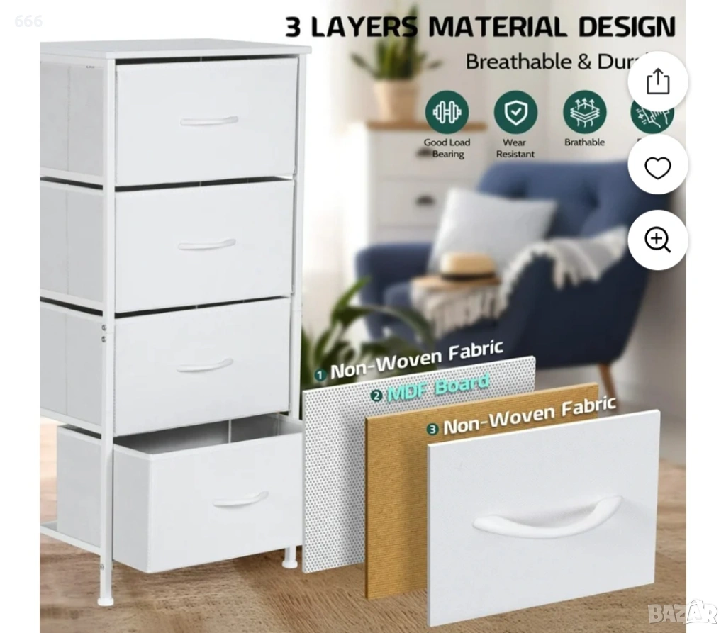 Стилен скрин от плат с 4 чекмеджета → Обява 53540874