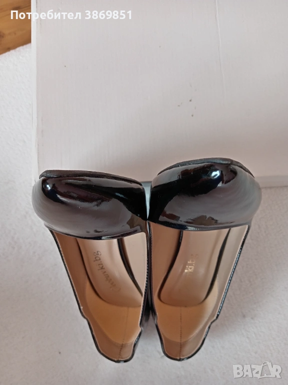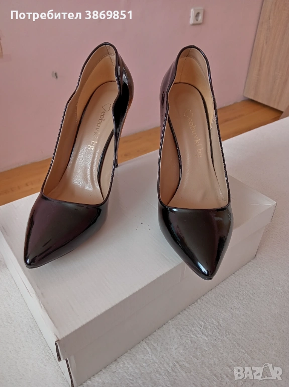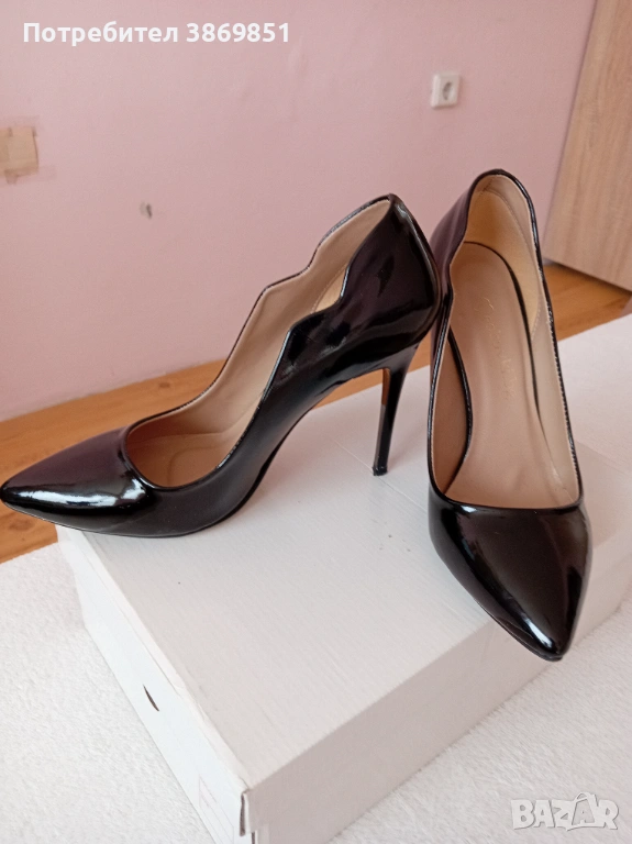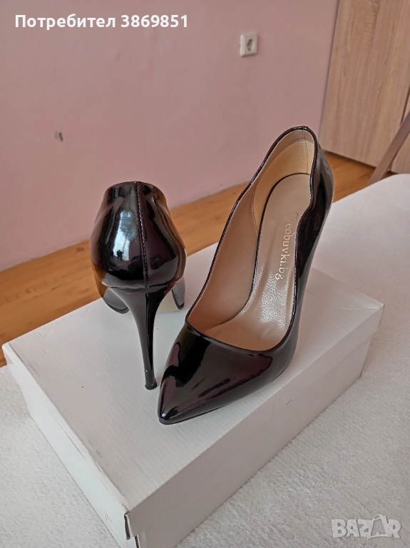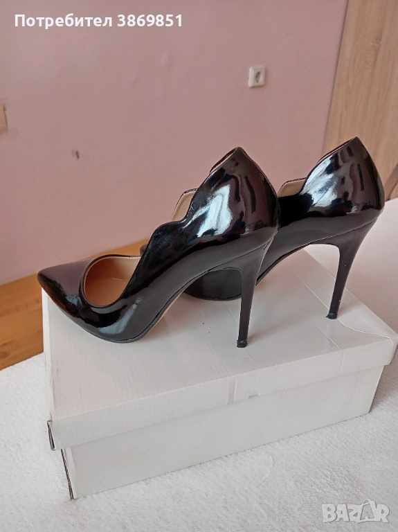 Дамски обувки черен лак, ток 10.5 см, дължина на ходилото 25 см. Много запазени, без ожулвания. Използвани еднократно.