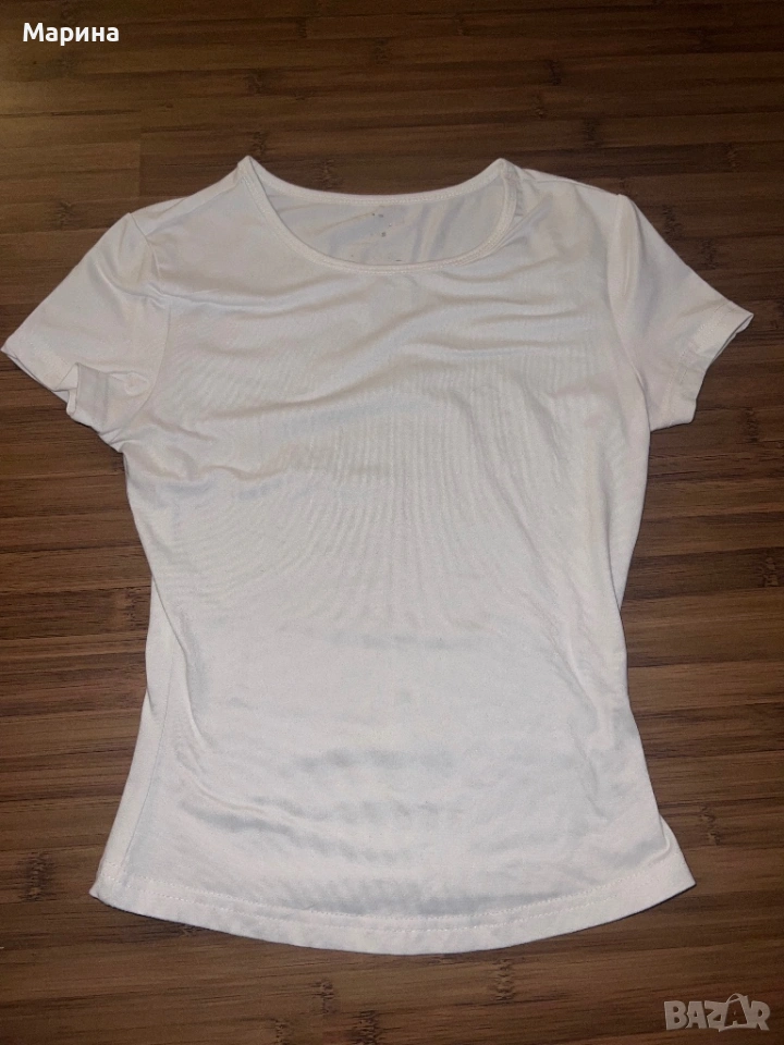 бяла тениска за фитнес, прилепнала → Обява 53541130
