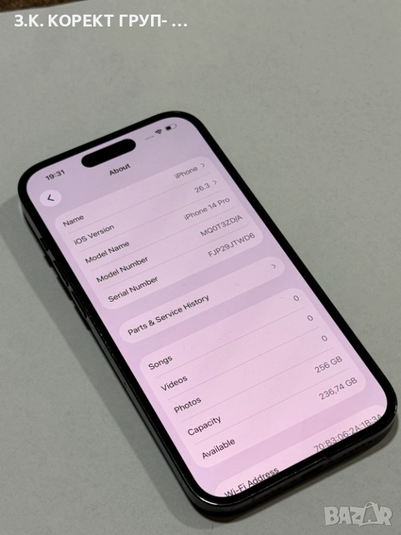 Продавам мобилен телефон iPhone 14 Pro с вътрешна памет 256GB. Устройството е в отлично козметично състояние и е готово за употреба. Снабден е с високотехнологични функции и качествени материали. Живота на батерията е 79%.