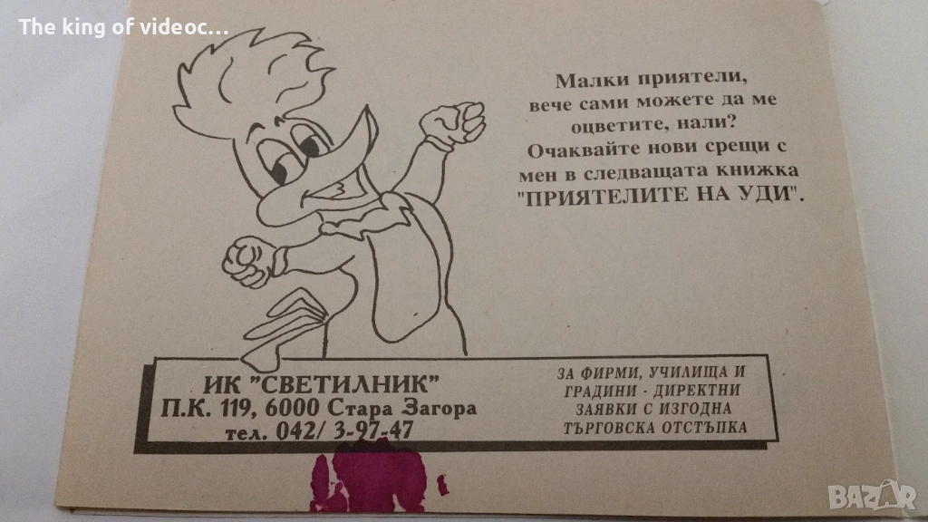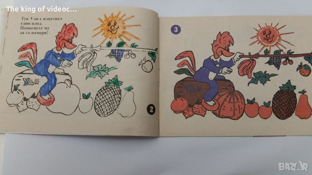 Продавам малка книжка за оцветяване от началото на 90-те години. Само една рисунка е оцветена до половината . 8 картинки за оцветяване без тази която е оцветена до половината с нея са 9 . Размери : Ширина - 16 см.
