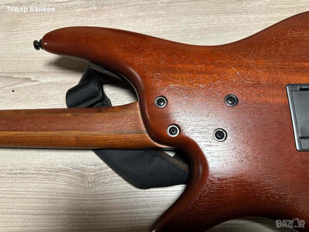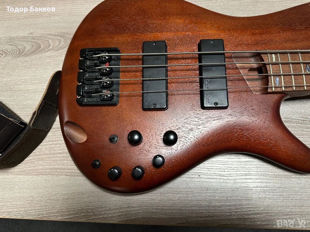 Продавам бас "Ibanez " с адаптори Бартолини. Баса се продава с колан и мек кейс. Има драскотина, която се вижда на снимките. Моля, не ми предлагайте бартери, защото са ми необходими средства за закупуване на друго. Цената е 350 евро.