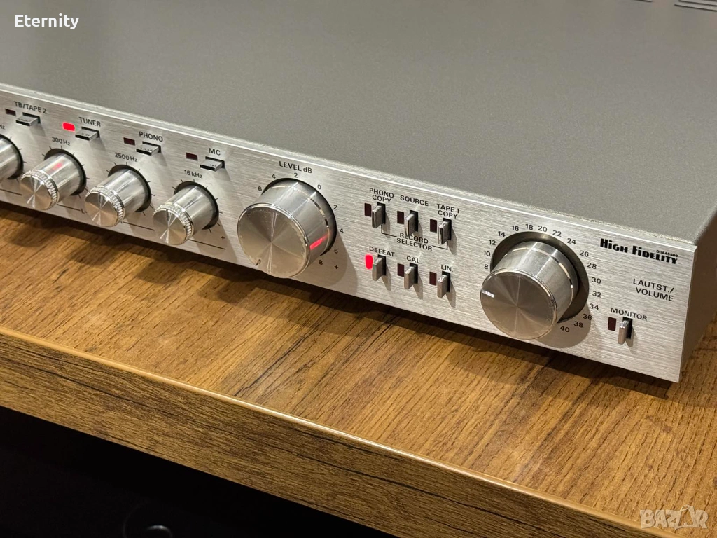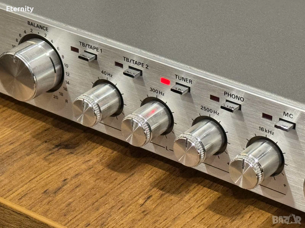 Входове: Разполага с богата селекция от входове, включително 2 x Aux, 2 x Tape, както и Phono входове за грамофони с възможност за избор между MM (Moving Magnet) и MC (Moving Coil) дози.