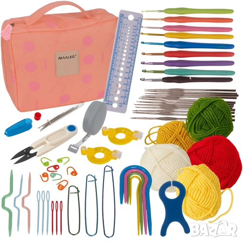 Всички аксесоари са подредени в удобен калъф или чанта, което позволява лесно съхранение и пренасяне – у дома, по време на пътуване или на почивка. Комплектите са отлична идея за подарък за майка, баба, сестра или приятел, както и за всеки, който иска да започне ново творческо хоби или да развие уменията си в плетенето.