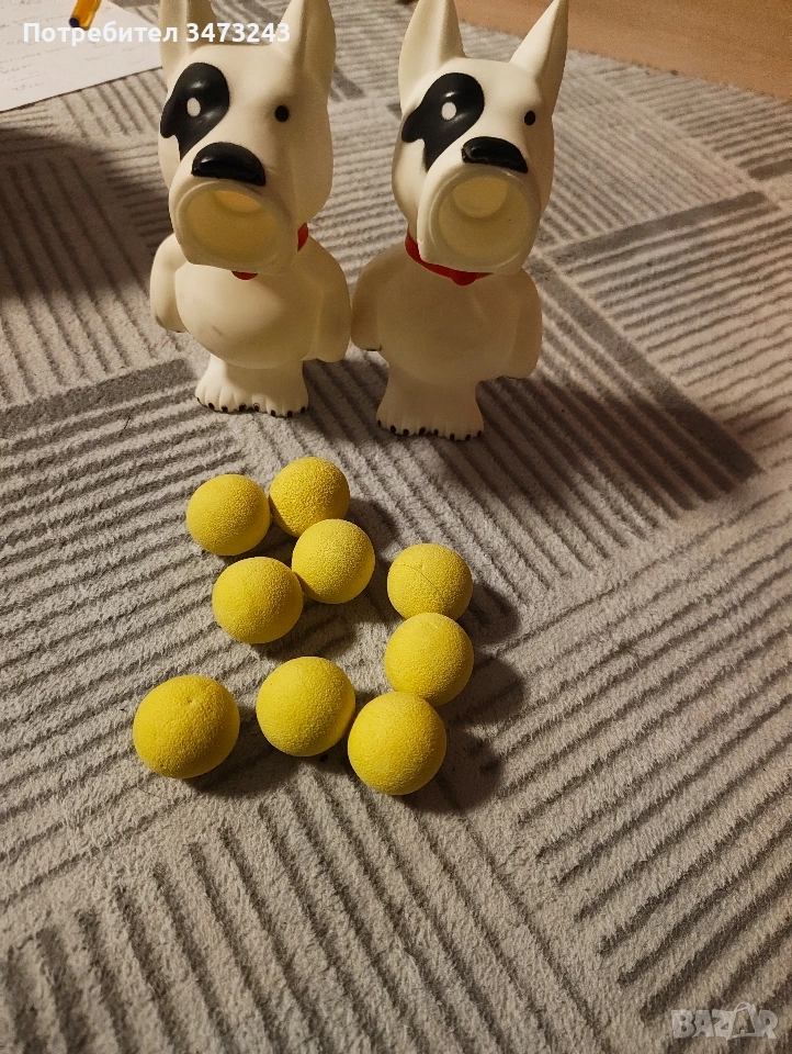 Играта представлява целене с меки топчета. Топчетата са 9 на брой,а кучетата 2броя без забележки е играта. Бартери НЕ