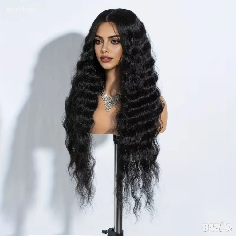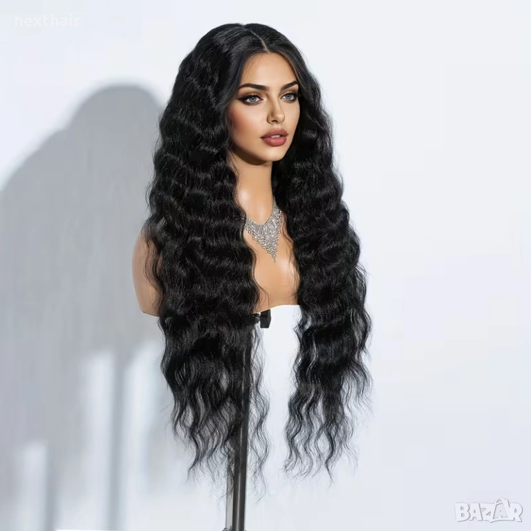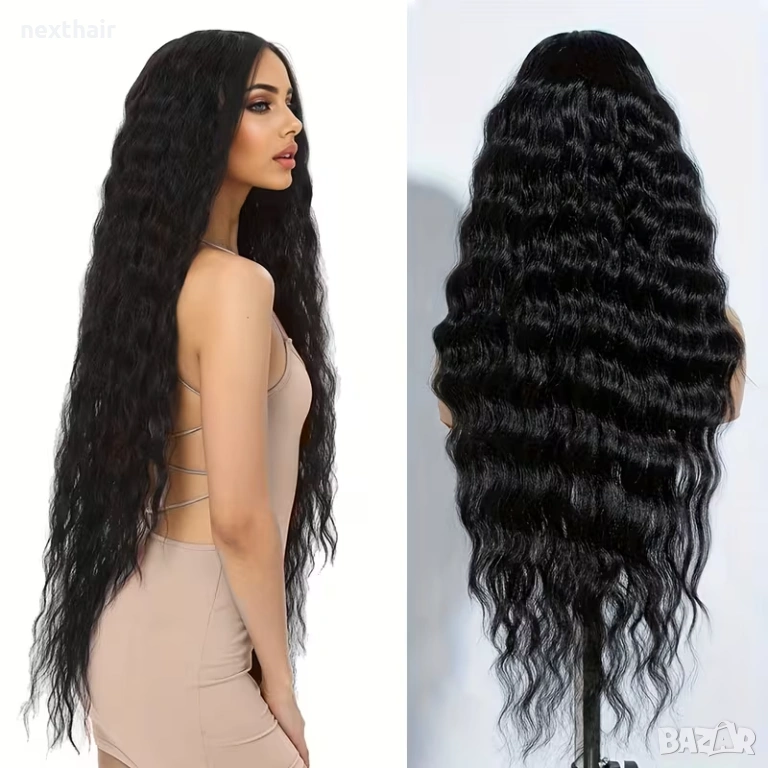 Потопете се в магията на дългата, гъста и елегантна коса с тази черна вълнообразна синтетична перука с впечатляваща дължина от 95 см. Меките, естествено падащи вълни придават изтънчен и женствен вид, а наситеният черен цвят подчертава всяка визия - от ежедневна до сценична.