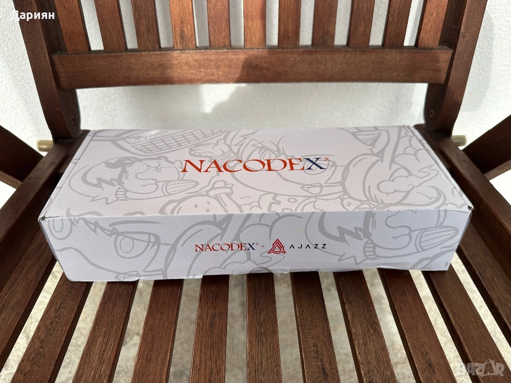 Клавиатурата е чисто нова като е лимитирана серия от партньорството на Ajazz с Nacodex. Клавиатурата е с Cherry MX Red Switch-ове които също така са Hot Swap. Идва с пълния комплект екстри които включват: Упътване, usb-c кабел, 2 резервни Red Switch-a, инструменти за махане на капачки и switch-ове и streamer (стример) лента която се слага в левия край на клавиатурата.