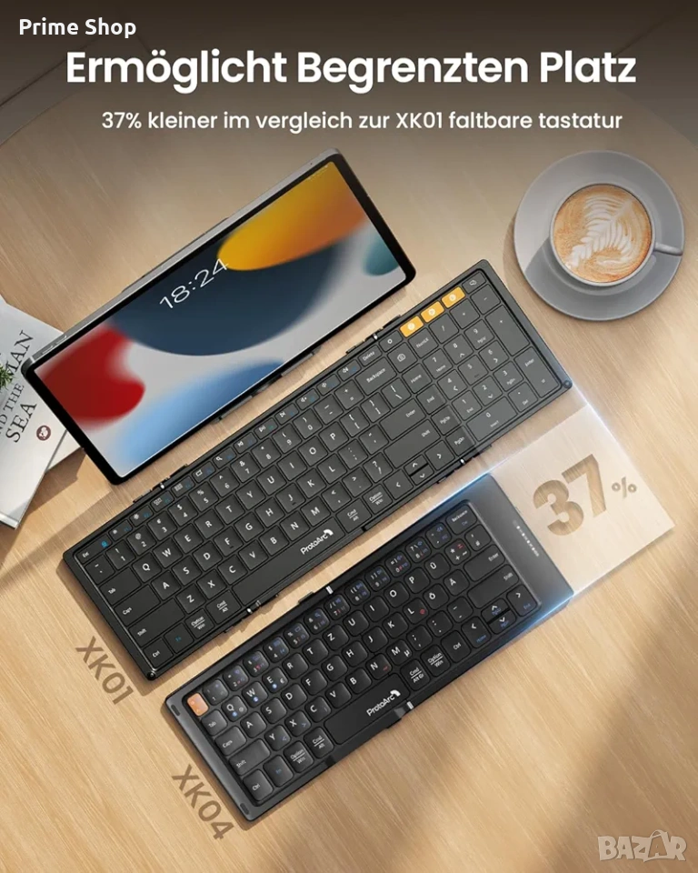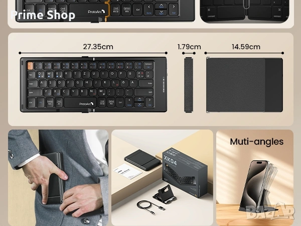 сгъваема клавиатура, безжична клавиатура, Bluetooth клавиатура, ProtoArc XK04, мини клавиатура, клавиатура за таблет, клавиатура за телефон, QWERTZ клавиатура, преносима клавиатура, компактна клавиатура