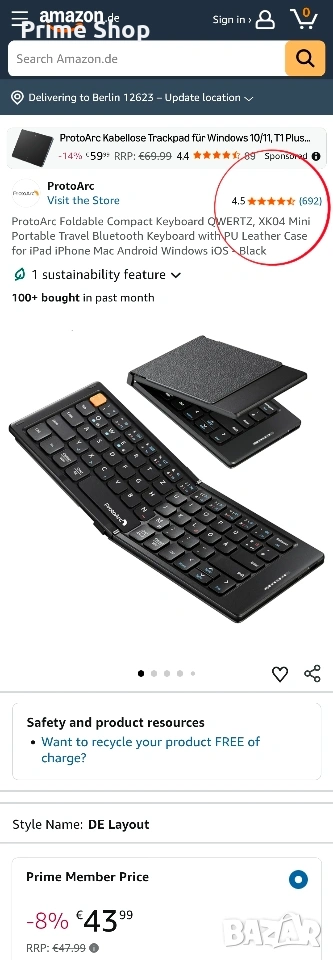 Продуктът поддържа изключително висок потребителски рейтинг в Amazon Германия, регистрирайки оценка от 4.5 от 5 възможни звезди на базата на близо 700 клиентски отзива.
