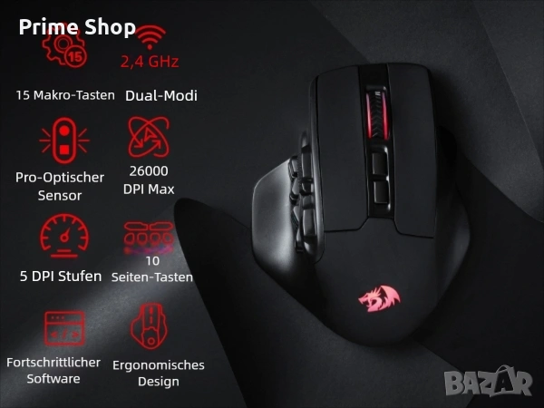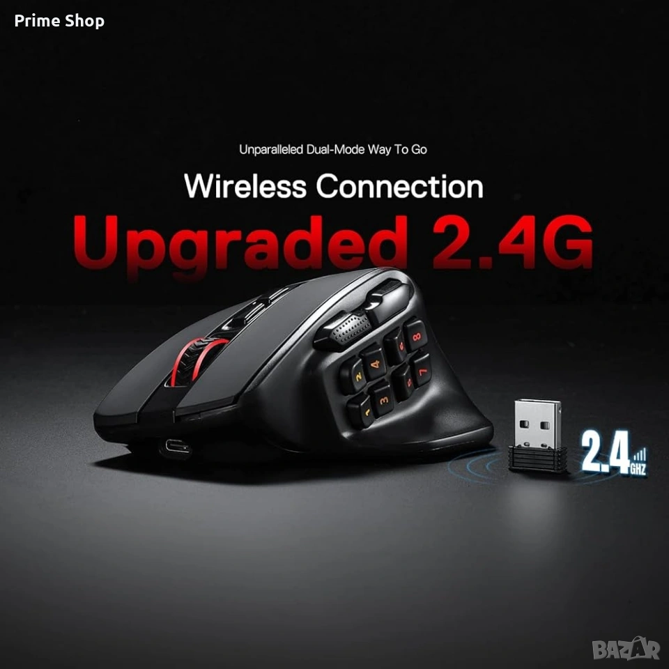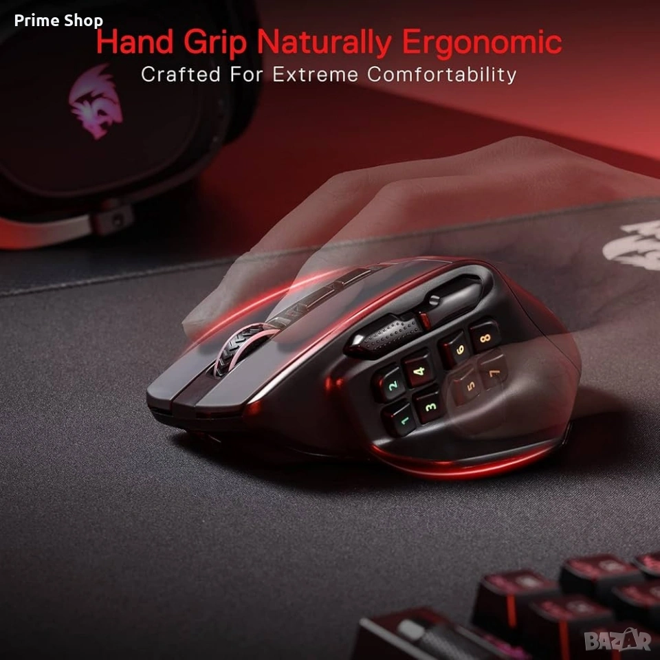 Тагове: Redragon M811 Pro, безжична мишка, гейминг мишка, MMO мишка, 26000 DPI, оптична мишка, RGB мишка, компютърна периферия, геймърски аксесоари, PAW3395, макро бутони