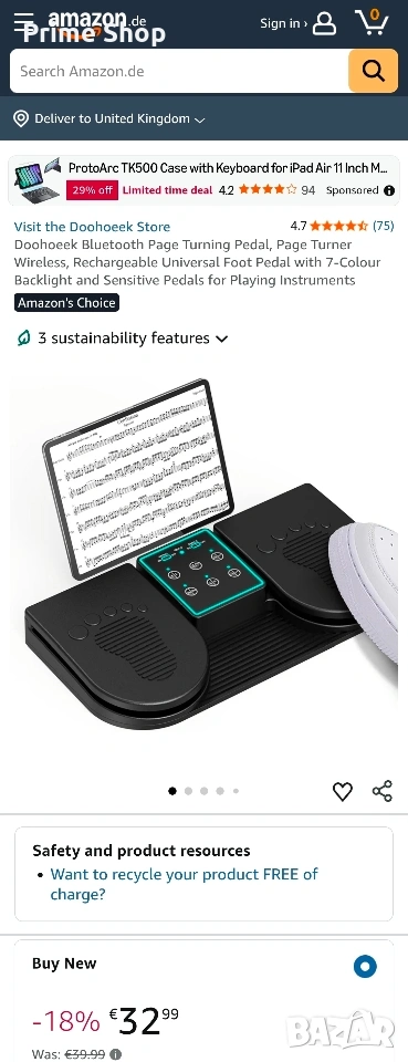 Тагове: bluetooth педал, педал за прелистване, Doohoeek, page turner, четене на ноти, дигитални партитури, музикални аксесоари, педал за таблет, безжичен педал, педал за китаристи, RGB педал